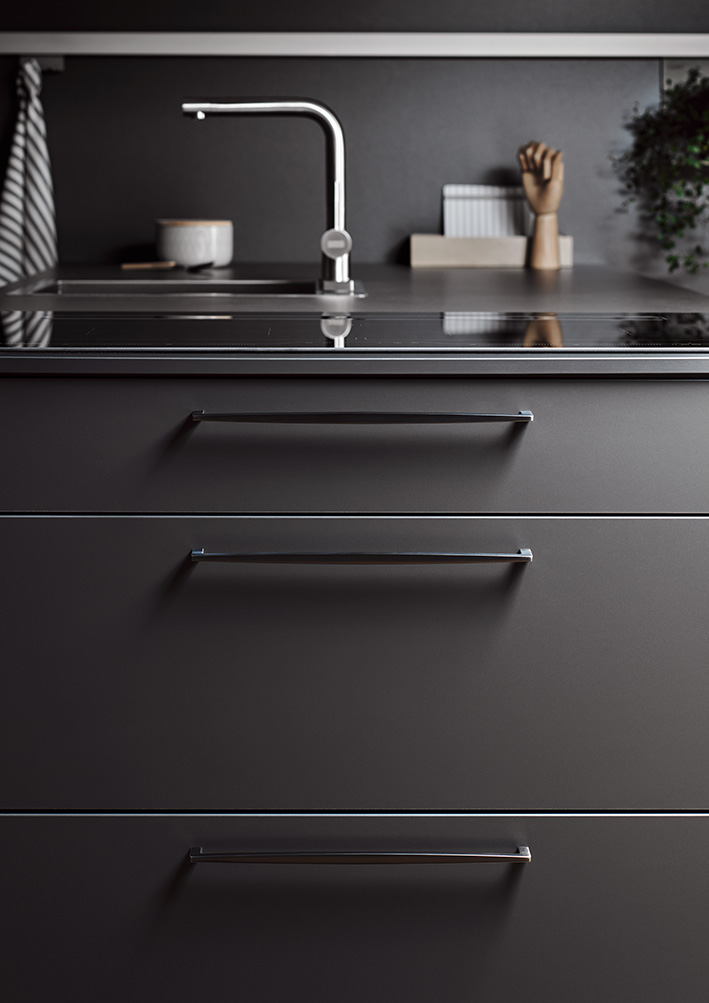 Im Trend liegen derzeit schwarze Griffe, sehr schön zur Asteiche, oder Ton in Ton mit der schwarzen Front. (Foto: AMK)