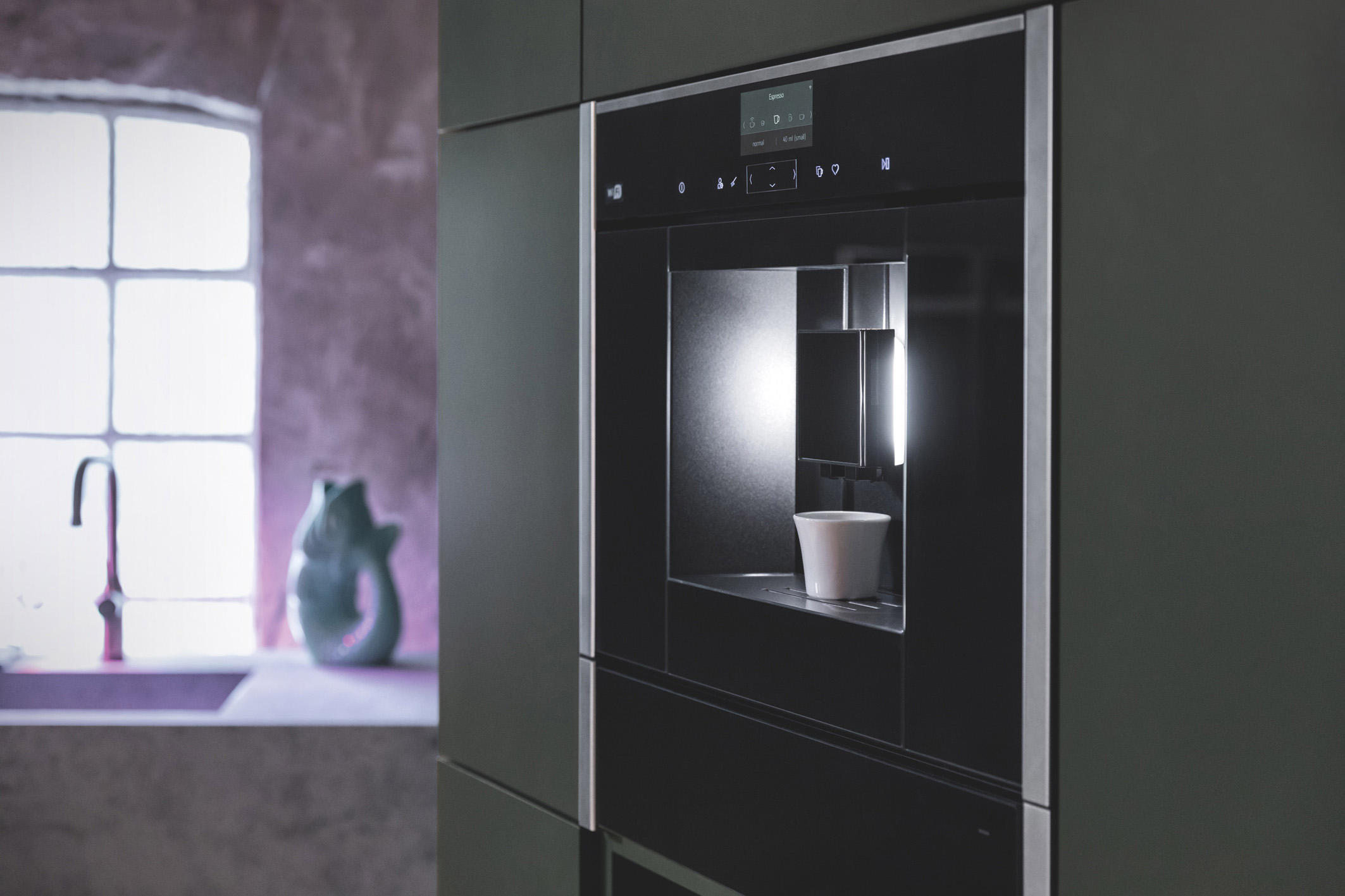 Auch für optimale Hygiene ist rundum gesorgt. Das Säubern und Entkalken der Geräte managen automatische Reinigungs- und Entkalkungsprogramme. Wann ein Entkalkungsvorgang ansteht, darüber informiert der Kaffeevollautomat selbst und wenn das Gerät vernetzungsfähig ist, die App. Damit kann man zudem interessante Informationen rund um das Thema Kaffee aufstöbern, neue Rezepte entdecken und direkt an seinen smarten Kaffeevollautomaten weiterleiten. Oder bei eventuell auftretenden technischen Problemen den Kundendienst informieren, der dann virtuell auf das Gerät zugreifen kann, sofern seine Besitzer dies wünschen. Spitzen-Einbaumodelle sind u. a. mit einer aktivierbaren Annäherungssensorik ausgestattet. Sie erkennt, wenn man sich dem Touchdisplay per Hand oder Körper nähert und schaltet dann z. B. das Gerät und die Beleuchtung ein. Damit das Lieblingsgetränk makellos schmeckt, reduzieren Filter den Kalkgehalt des Wassers – ebenso geruchs- und geschmacksstörende Stoffe. Und nebenbei bemerkt: Die neuen hochwertigen Premium- und Markenmodelle bereiten ihre Kaffee- und Milchspezialitäten dank hochwertiger Mahlwerke zudem auch noch angenehm leise zu. (AMK)
