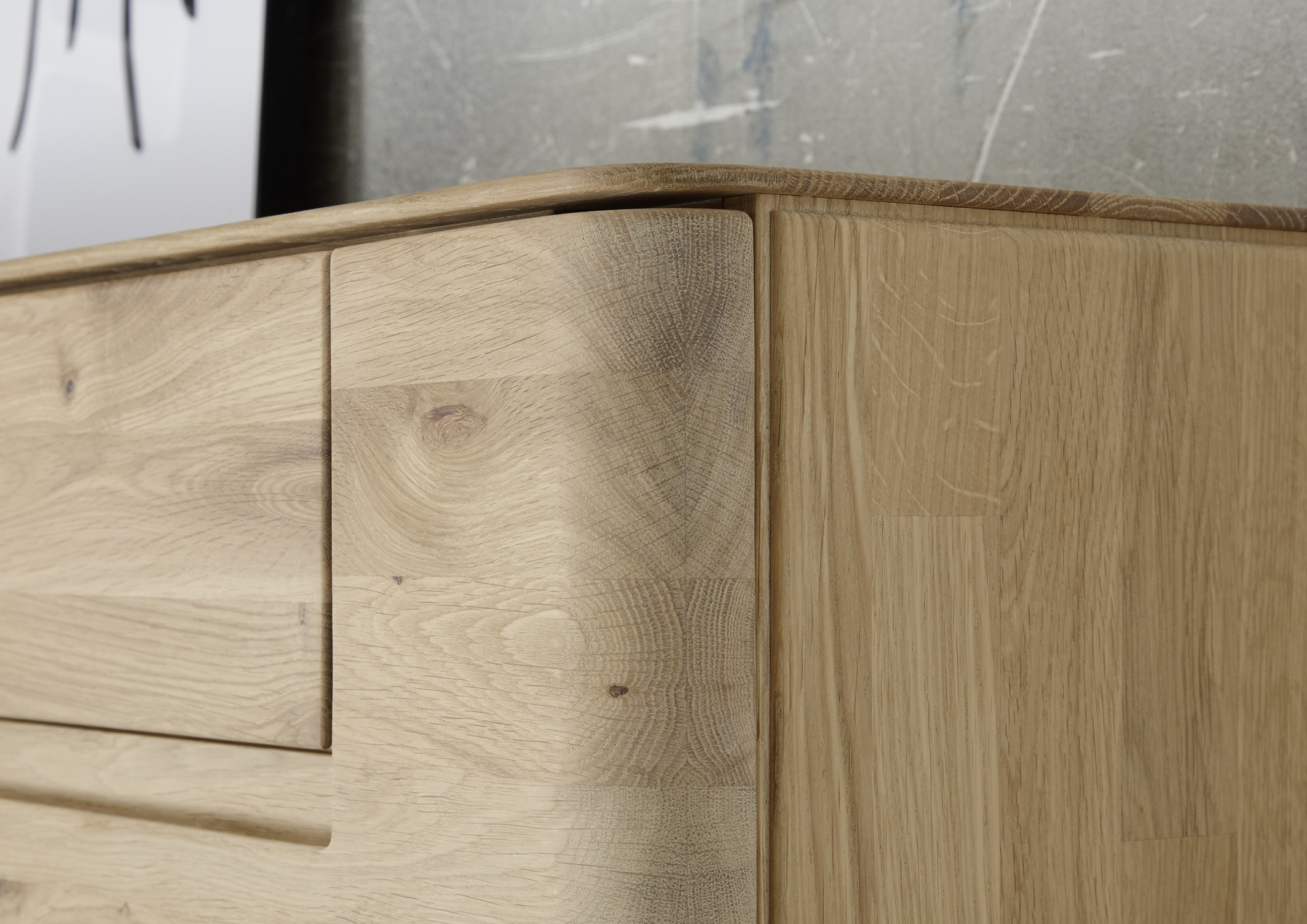 Bild 3: Wie hier an der Schubkastenfront, lässt sich das Stirnholz sehr gut durch die Jahrringe bestimmen. Foto: IPM/Möbelwerke A. Decker