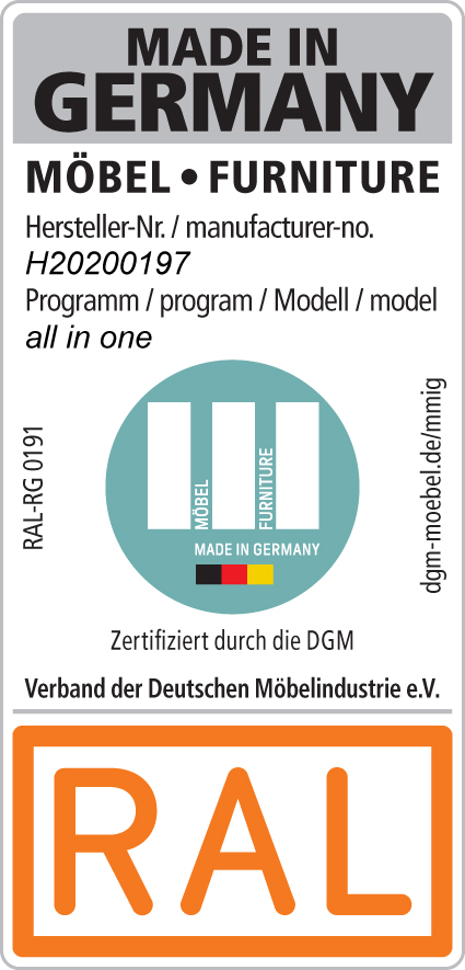 Darüber hinaus wurde der Hersteller aus dem Landkreis Cloppenburg jetzt auch mit dem geographischen Herkunftsgewährzeichen „Möbel Made in Germany“ zertifiziert. Seit dem 1. August 2020 gibt dieses Zeichen Endverbrauchern Aufschluss über die Herkunft von Möbeln. Gemäß der RAL-Registrierung 0191 muss die Konstruktion, Montage und Qualitätsprüfung in Deutschland stattfinden. Zudem muss der für die Qualität relevante Herstellungsprozess überwiegend in Deutschland erfolgen. Entwickelt und eingeführt hat das Herkunftslabel der Verband der Deutschen Möbelindustrie (VDM) gemeinsam mit RAL. Die Einhaltung der Anforderungen überwacht die DGM im Auftrag des VDM. „Made in Germany ist ein Qualitätsversprechen, das bei vielen Endverbrauchern schon seit vielen Jahren ankommt und das jetzt umso aussagekräftiger durch objektive Vorgaben definiert und nachgewiesen wird“, so Winning.