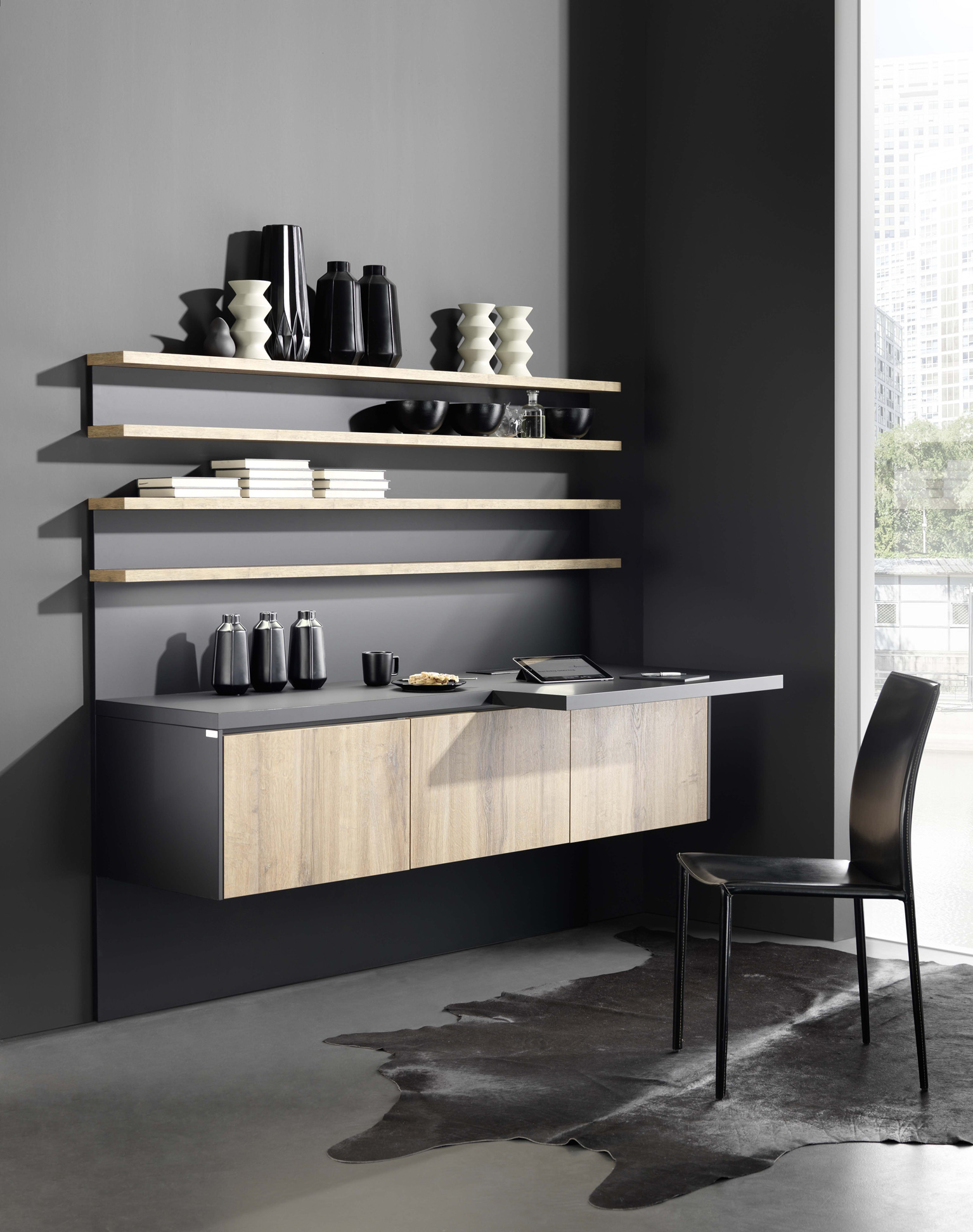 Eine weitere interessante Option sind multifunktionale Raumgestaltungssysteme mit offenen und geschlossenen, festen und verschiebbaren Elementen und das Ganze in einem durchgängigen Material- und Farbkonzept. Sie eignen sich zur Unterteilung und Neustrukturierung von Räumen und punkten insbesondere in kleinen Apartments (z. B. als Raumteiler). Wenn nur sehr wenig Platz zur Verfügung steht, dienen sie auch als Sichtschutz, hinter dem sich ein kleiner Arbeitsplatz verbirgt. Für Individualität und Flexibilität sorgt diverses Zubehör (z. B. Boxen, Regale), das sich in ein solches Raumgestaltungssystem integrieren lässt.