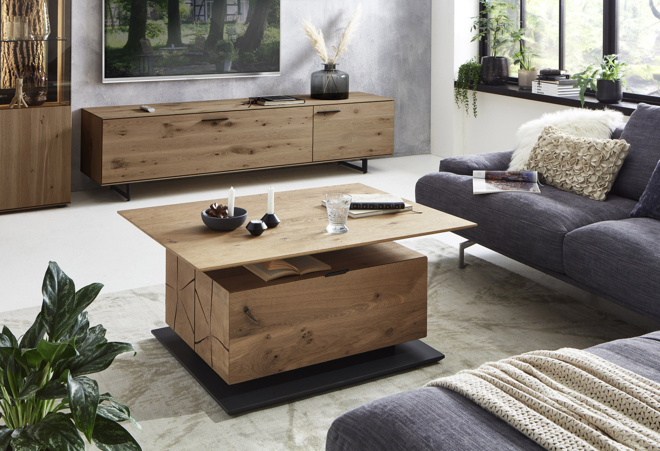 Jedes Bauteil eines Massivholzmöbels muss an einer Seite Jahresringe aufweisen – sonst ist es nicht aus Massiv- oder Vollholz gefertigt. Der Fachmann spricht hierbei von der sogenannten Stirn- oder Hirnholzseite. Um diese zu erkennen, muss ein Baumstamm im 90°-Winkel zu seiner Wuchsrichtung gesägt sein. „Bei einem rechteckigen Brett beispielsweise ist meist die kürzere Seite die Stirnseite, da jeder Baum so möglichst ressourceneffizient zu möglichst vielen großformatigen Bauteilen verarbeitet werden kann“, so Ruf. Hinzu kommt, dass die Längsfasern im Holz große Stabilität bieten, die sich auf das Möbelstück überträgt.