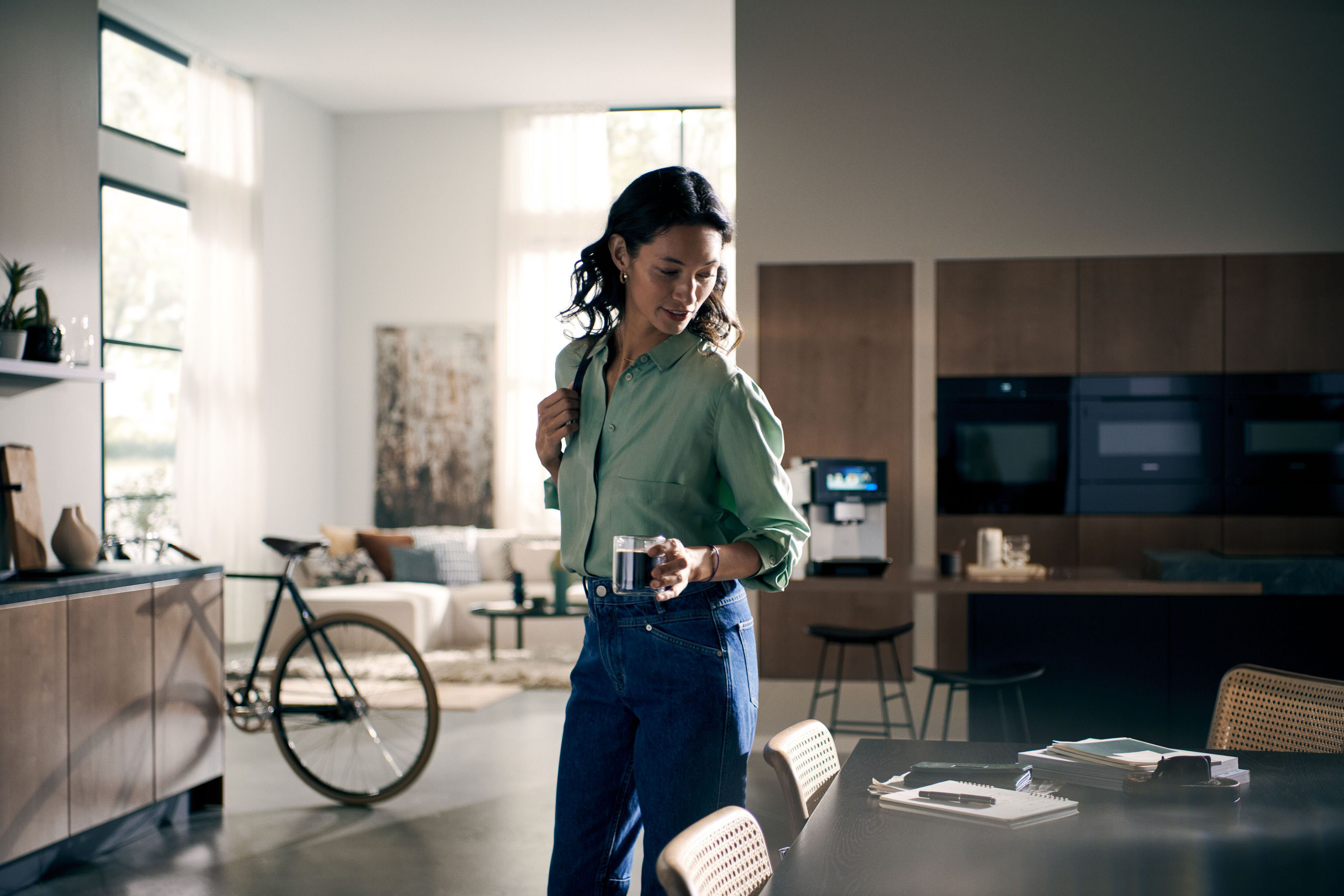 Die einen verbinden mit ihrer neuen Wohnküche einen Hort der Geborgenheit. Einen Wohlfühlbereich, in den sie sich zurückziehen, um zur Ruhe zu kommen und nach einem dynamischen Arbeitstag herunterzufahren. Vielleicht zunächst bei einer Tasse Tee oder einer der vielen leckeren Spezialitäten, die ihr neuer Kaffee-/Espresso-Vollautomat bereithält. Umgeben von einer Ruhe ausstrahlenden Wohnküche und bei sanfter Beleuchtung. Beispielsweise mit ultramatten Fronten in einem der neuen, edlen Grautöne mit leichtem Braunanteil kombiniert mit schönen Echtholzfurnieren oder bemerkenswert authentischen Holznachbildungen, wodurch eine sehr natürliche und wohlige Atmosphäre entsteht. Smarte, per App oder Sprachbefehl steuerbare Lichtszenarien ermöglichen dann den Wechsel von aktivierendem Licht hinein in den Entspannungsmodus.