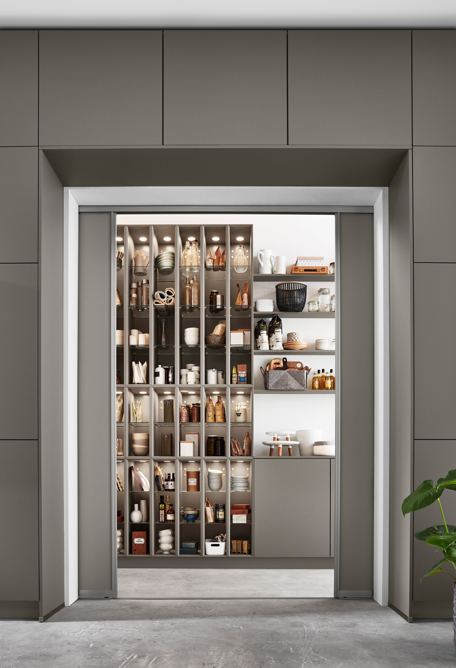 „Offene Wohnküchen sind auch die perfekten Familienküchen“, so Volker Irle, „weil dort einfach ganz viel stattfindet.“ Gemeinsam zubereiten, kochen und genießen – ob Kindergeburtstage, Familienfeiern oder Partys mit Freunden und Kollegen. Dort können die Kinder bei ihren Hausarbeiten begleitet werden, während man von der Wohnküche per Durchgangstür mal eben in den angrenzenden Vorrats- & Hauswirtschaftsbereich hinüberwechselt, um dort jene trockenen Lebensmittelvorräte und andere Dinge zu verstauen, die in den Hochschränken der Küche keinen Platz mehr haben. Oder man befüllt die Waschmaschine mit einer neuen Ladung und legt die bereits fertige Wäsche in den Trockner. Wohnküchen mit hauswirtschaftlichen Funktionsbereichen – eine praktische und sehr komfortable Lösung dank ganz kurzer Wege. Zudem ein täglicher Blickfang, da beide im Design aufeinander abgestimmt sind.