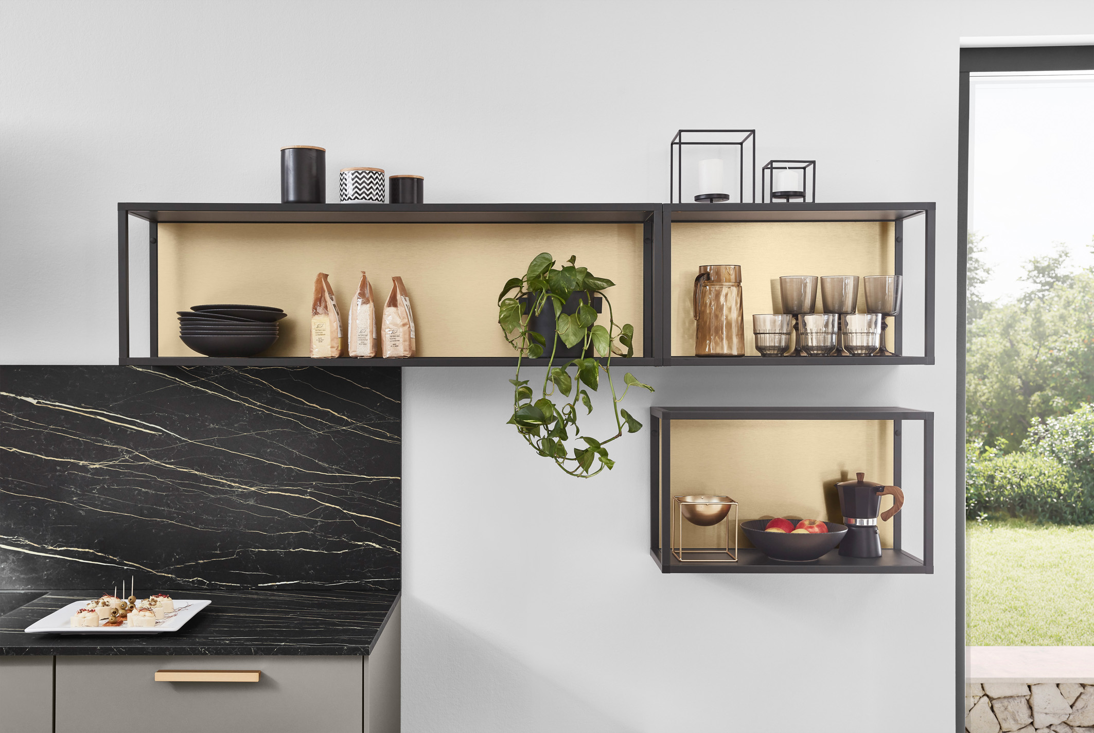 Metallics setzen dezente Glanzlichter. „Eine feine, elegante Abrundung erfahren die neuen Lifestyle-Wohnküchen durch die Kombination mit warm und behaglich anmutenden metallischen Oberflächen in Gold-, Bronze- und Kupfertönen“, erläutert Volker Irle. Beispielsweise als Nischen-Dekor in luxuriöser Bronze-Optik, als goldene Rückwand eines schwarzen Regalsystems oder als beleuchtete goldene Griffleisten.