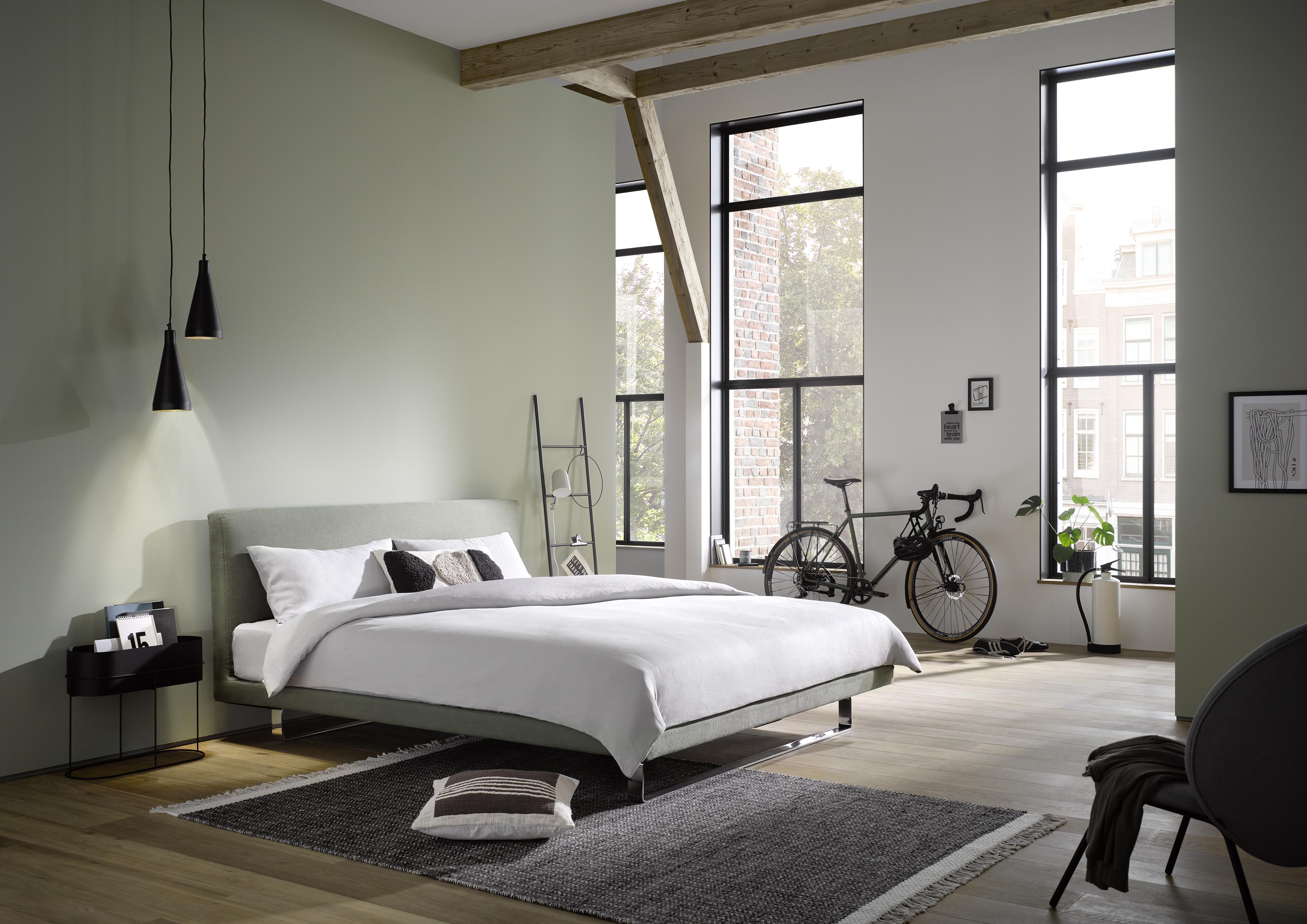 Auch im Schlafzimmer, dem Raum der Ruhe und Erholung, wird Wohnlichkeit groĂźgeschrieben. Eine behagliche Atmosphäre vermitteln furnierte Holzoberflächen, Elemente aus Massivholz und Lackoberflächen. Die Eiche stellt nach wie vor die dominierende Holzart dar, oft in Kombination mit Lack in hellen oder dunklen Farbtönen. Wer es etwas ausdrucksstarker mag, wählt beispielsweise einen warmen GrĂĽnton.Â
