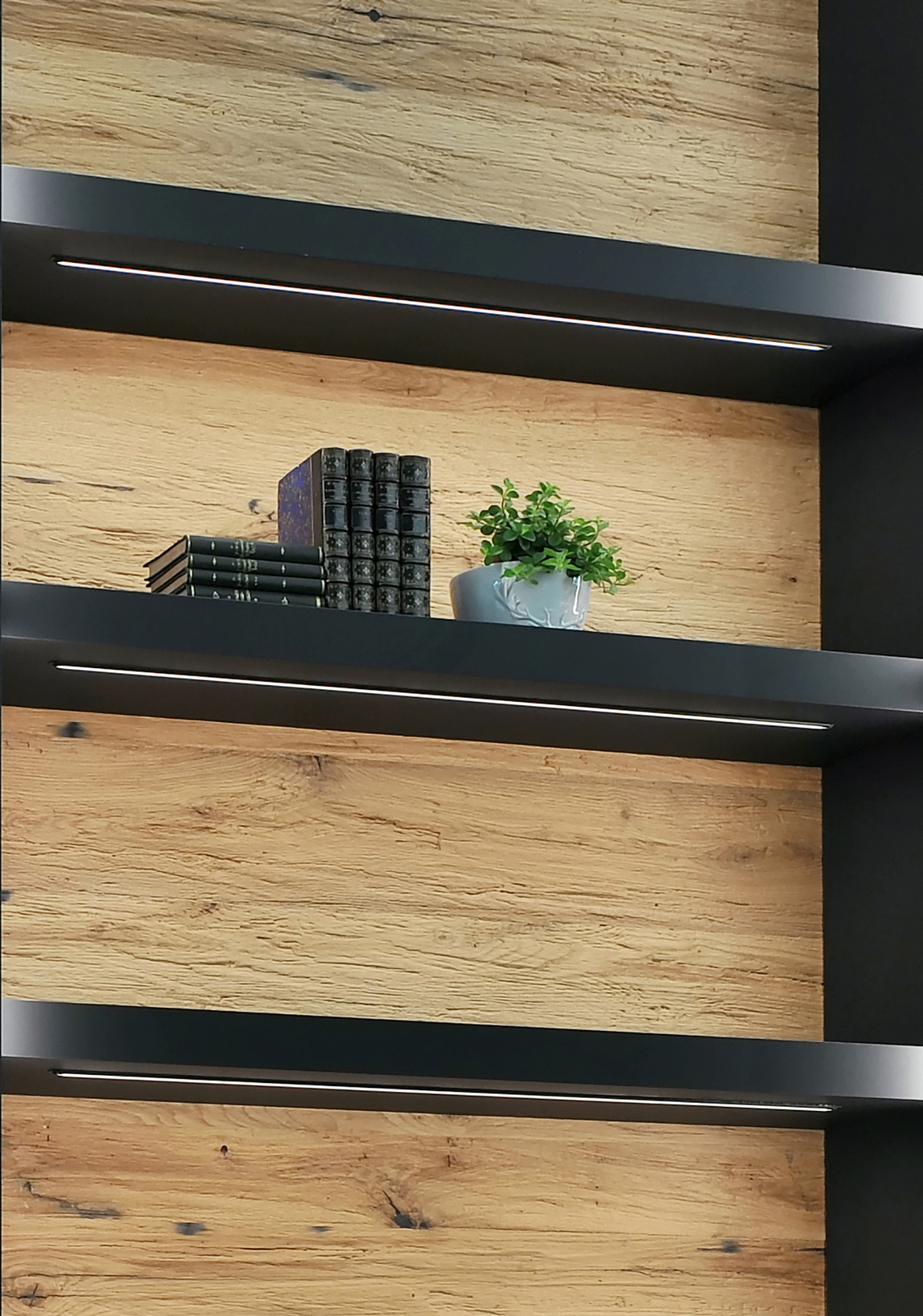 Vielseitig einsetzbare Profilleuchten mit hoher Lichtausbeute – als Anbauleuchte, bündig einbaubare Profilleuchte, Lichtquelle im nicht sichtbaren Bereich der Möbel oder auch als Pendelleuchten-Variante mit Abhängung. (Foto: AMK)