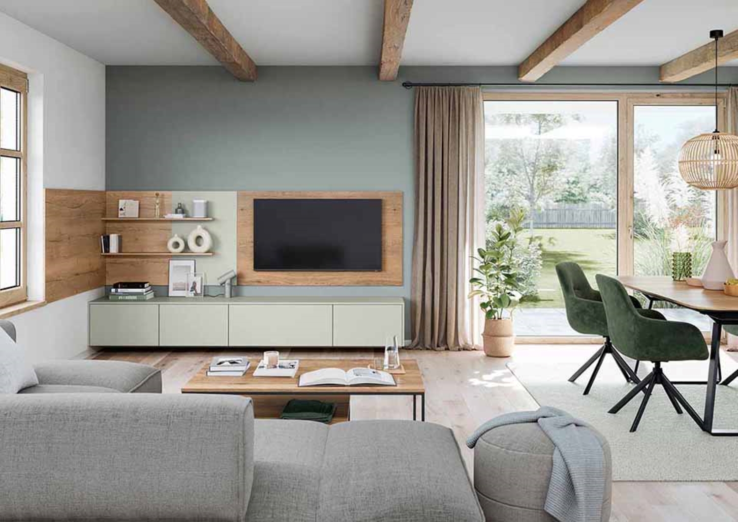 Alle grünen, erd-, sand- und terrakottafarbenen Küchenplanungen bringen ein Stück Natur und Geborgenheit nach Hause. Wer Wert auf zeitloses Understatement legt, wählt aus dem großen und attraktiven Farbspektrum eine der edlen hellen, mittleren oder dunklen Grau-, AnÂthrazit-, Greige- oder Taupe-Nuancen. Alle neu interpretierten Farben, insbesondere auch Weiß, sind abgetönt. Das mutet so schön behaglich und wohnlich an.
