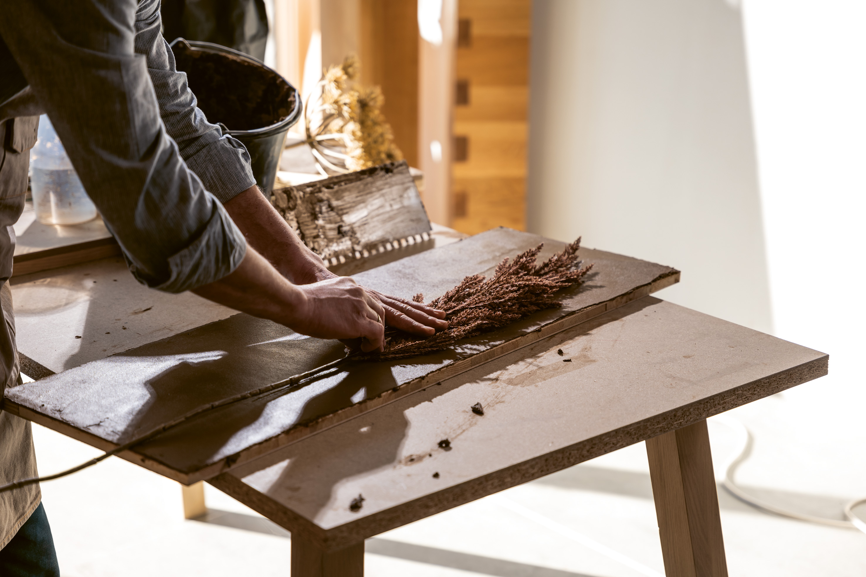 Bild 3: Der sanfte Farbton von Lehm kann in einer zunehmend hektischen Zeit für die nötige Erdung und Ruhe sorgen. Foto: IPM/Wimmer Massivholzmöbel