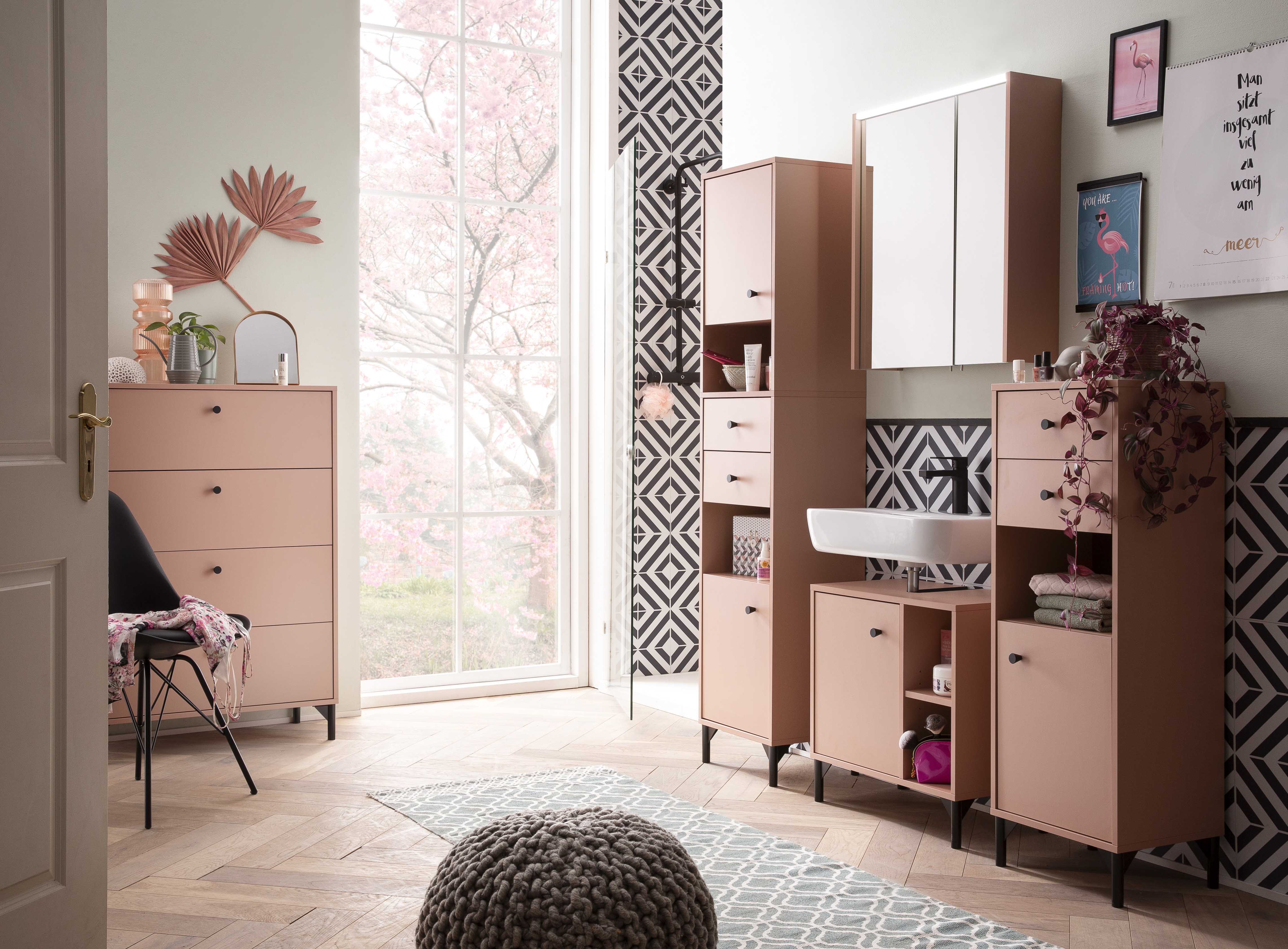 Bei Badmöbeln finden sich aber nicht nur Naturtöne und dunkle Farben, sondern auch sanfte Pastelltöne und kräftigere Farben wie ein ausdrucksstarkes Terracotta. Auch die Badkeramik wird farbiger. Neben den klassischen eckigen Formen sind abgerundete Schränke und Sideboards gefragt.
