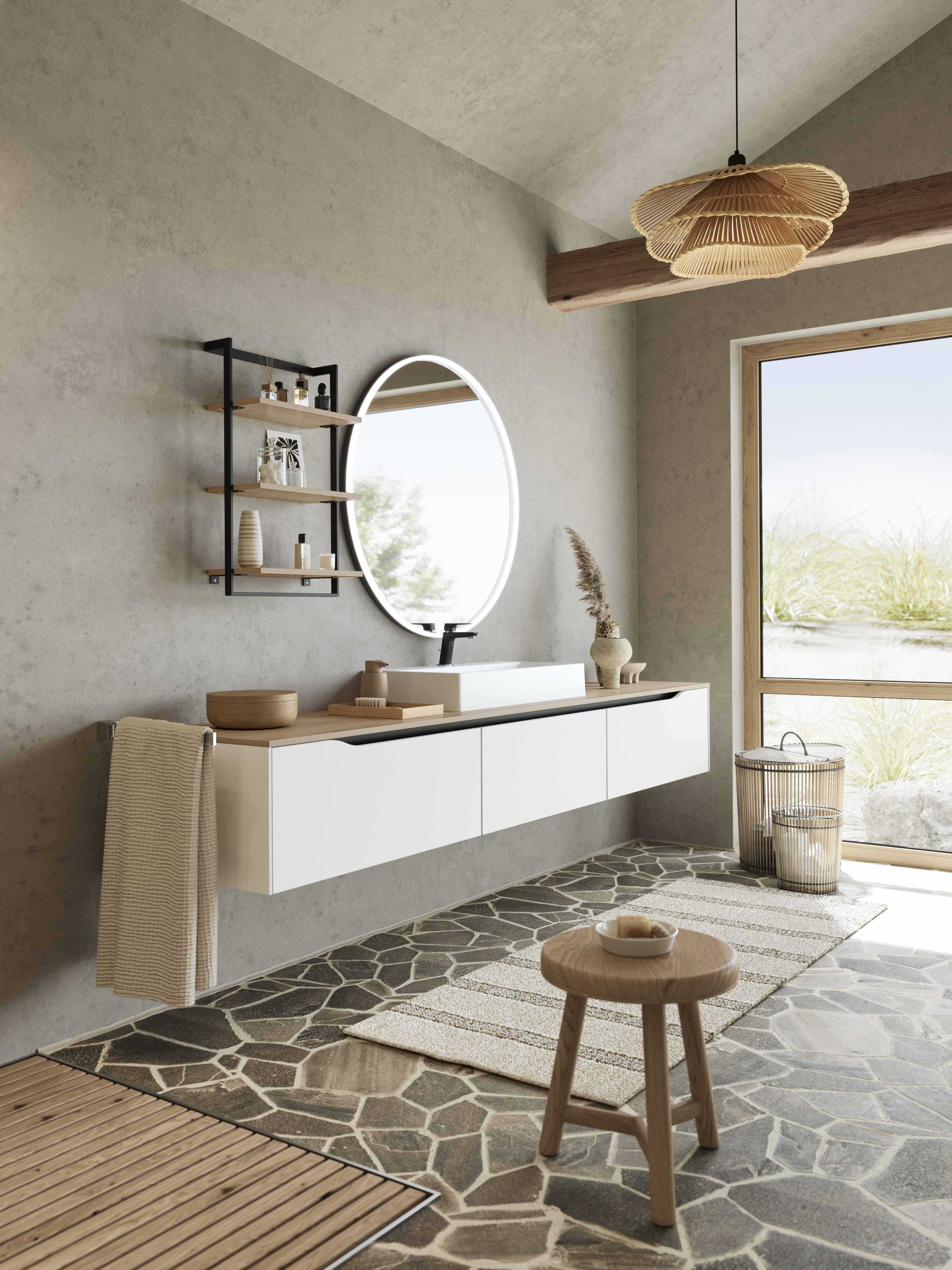 Mit natürlichen Materialien und eleganten Möbeln wird das Bad zum behaglichen Lifestyle-Rückzugsort