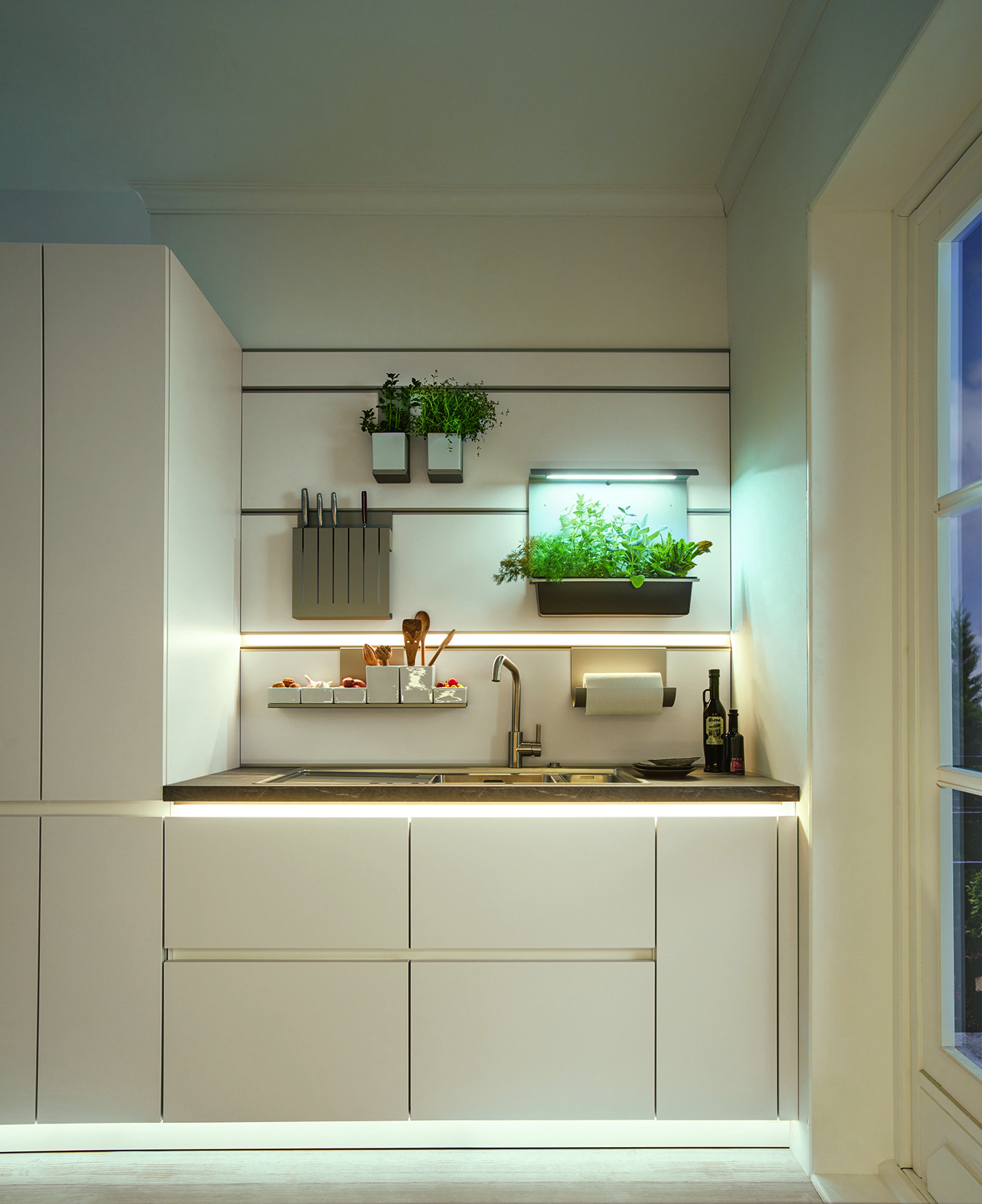 Gerade in kleinen Küchen muss der vorhandene Stauraum optimal genutzt werden. Neben der geringen Quadratmeterzahl kommen oftmals weitere Herausforderungen hinzu, wie etwas Dachschrägen oder besonders schmale Grundrisse. „Die Experten aus dem Küchenfachhandel unterstützen mit Ideen und Ratschlägen und finden auch für sehr kleine Küchen passgenaue Lösungen“, stellt Irle fest. Am Anfang steht das korrekte Aufmaß des Raums, dann folgt idealerweise die Planung der Strom- und Wasseranschlüsse. Grundsätzlich sind für Wände und Schrankfronten eher helle Farben zu empfehlen, da sie den Raum größer wirken lassen. Farbige Akzente lassen sich mit dekorativen Elementen setzen.