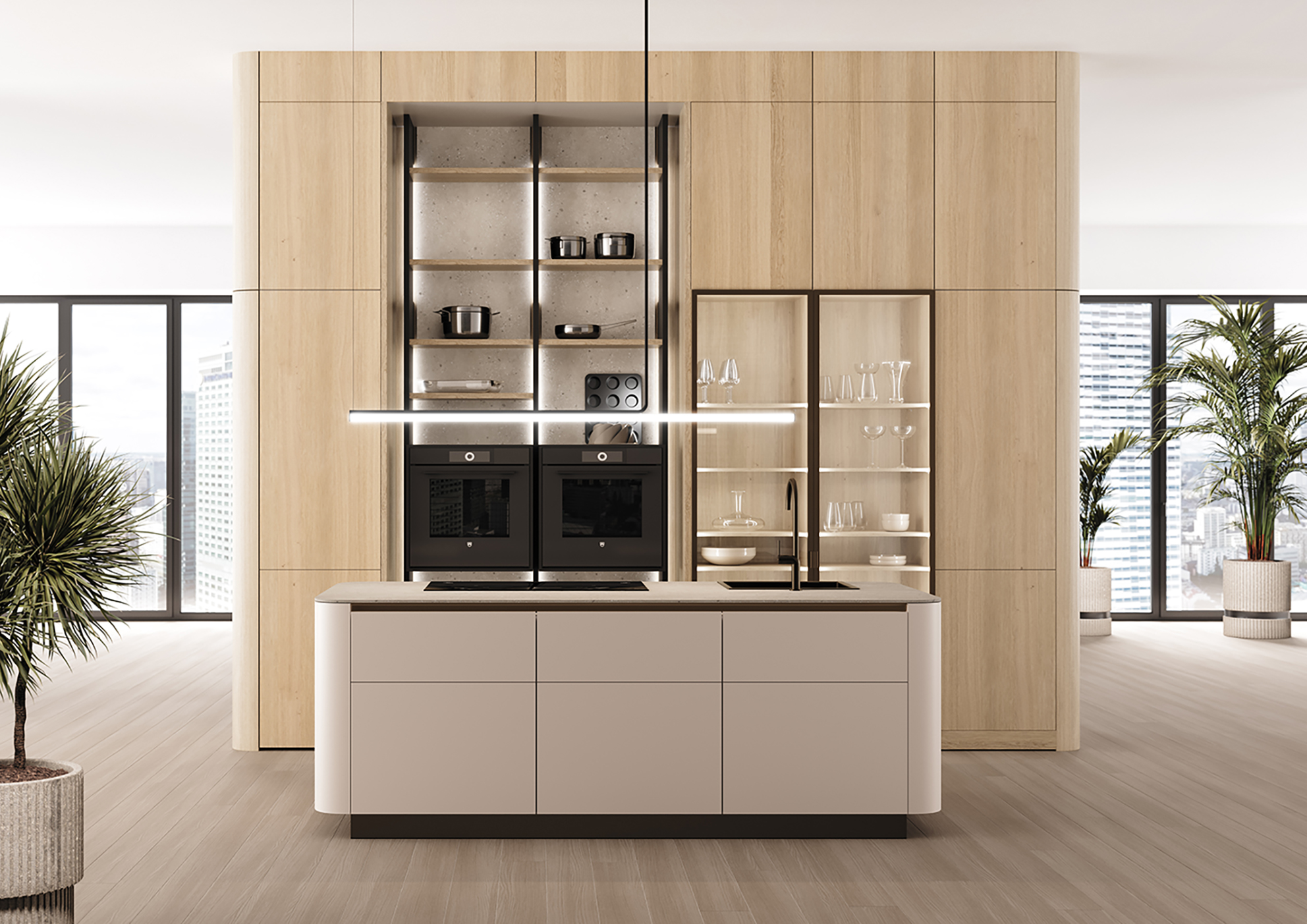 Bild 3: Die organisch geformten Küchenmöbel schaffen ein einladendes, elegantes Interieur.  (Foto: Leicht Küchen)