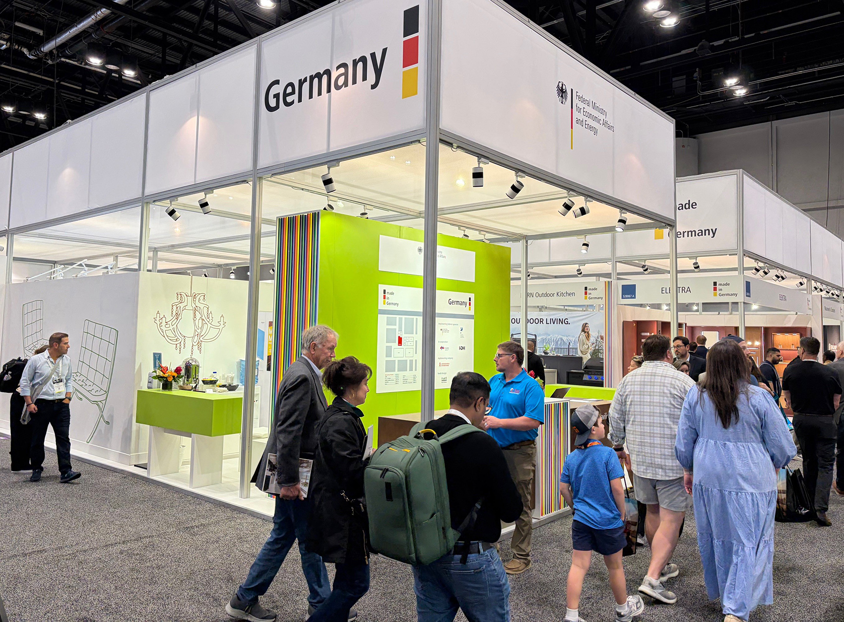 Der gemeinsam von AMK und VDM organisierte Gemeinschaftsstand umfasst zehn deutsche Aussteller: Neben dem Outdoorküchenproduzenten Burn Outdoor Kitchen zählen dazu die Küchenzulieferer und -dienstleister Aluminium Féron, Elektra, Hettich, Imos, Kesseböhmer, Kirchhoff und Vauth-Sagel, der Bad- und Sanitärspezialist A. u. K. Müller sowie die AMK. Die deutsche Gemeinschaftsbeteiligung wird durch das Bundeswirtschaftsministerium gefördert. Im Rahmen des Auslandsmesseprogramms können deutsche Unternehmen auf wichtigen Auslandsschauen zu vergünstigten Konditionen ausstellen.