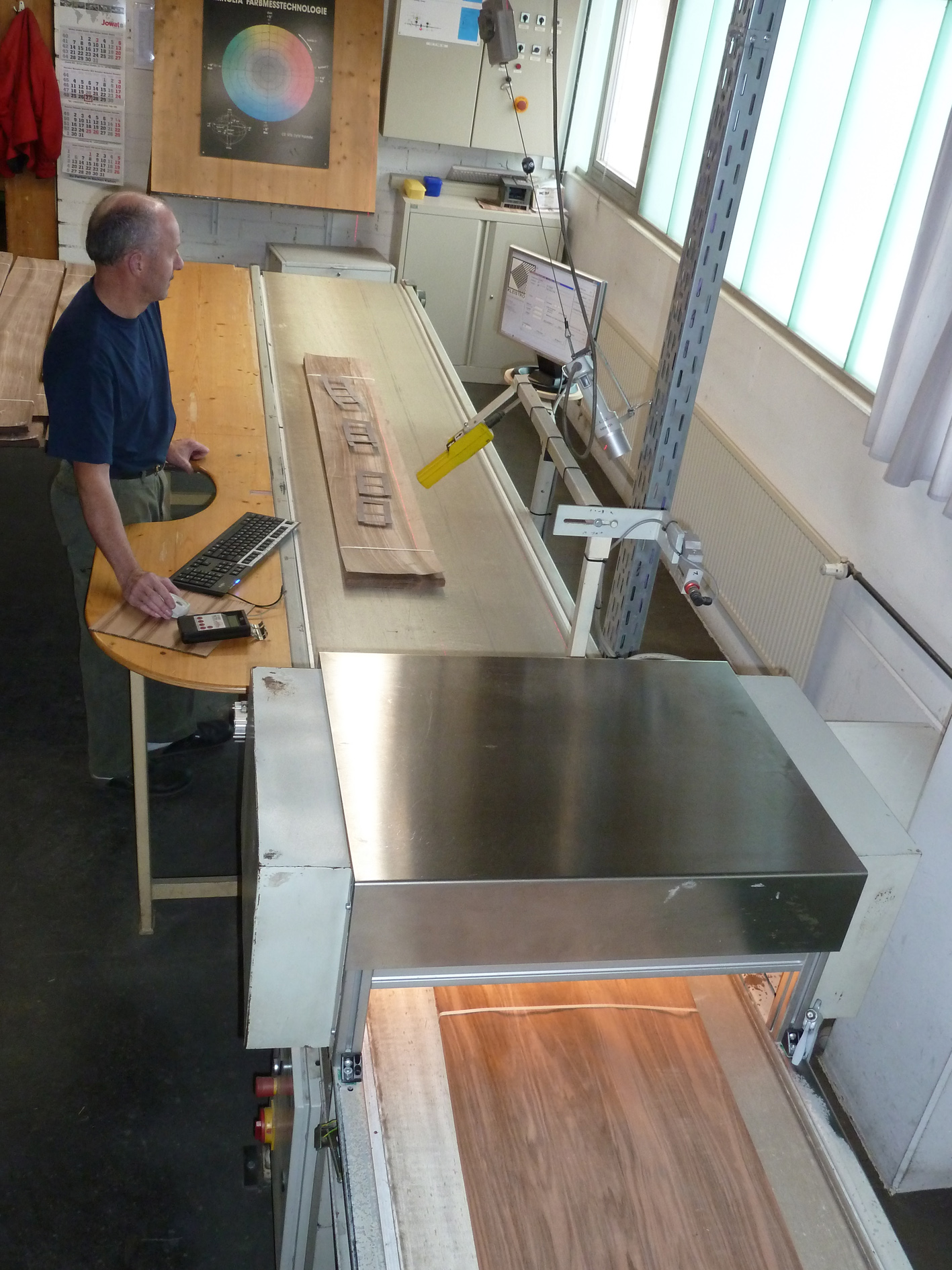 Hier entstehen die Schalterblenden aus europÀischem Wallnuss-Furnier. Foto: IFN/FURWA Furnierkanten GmbH