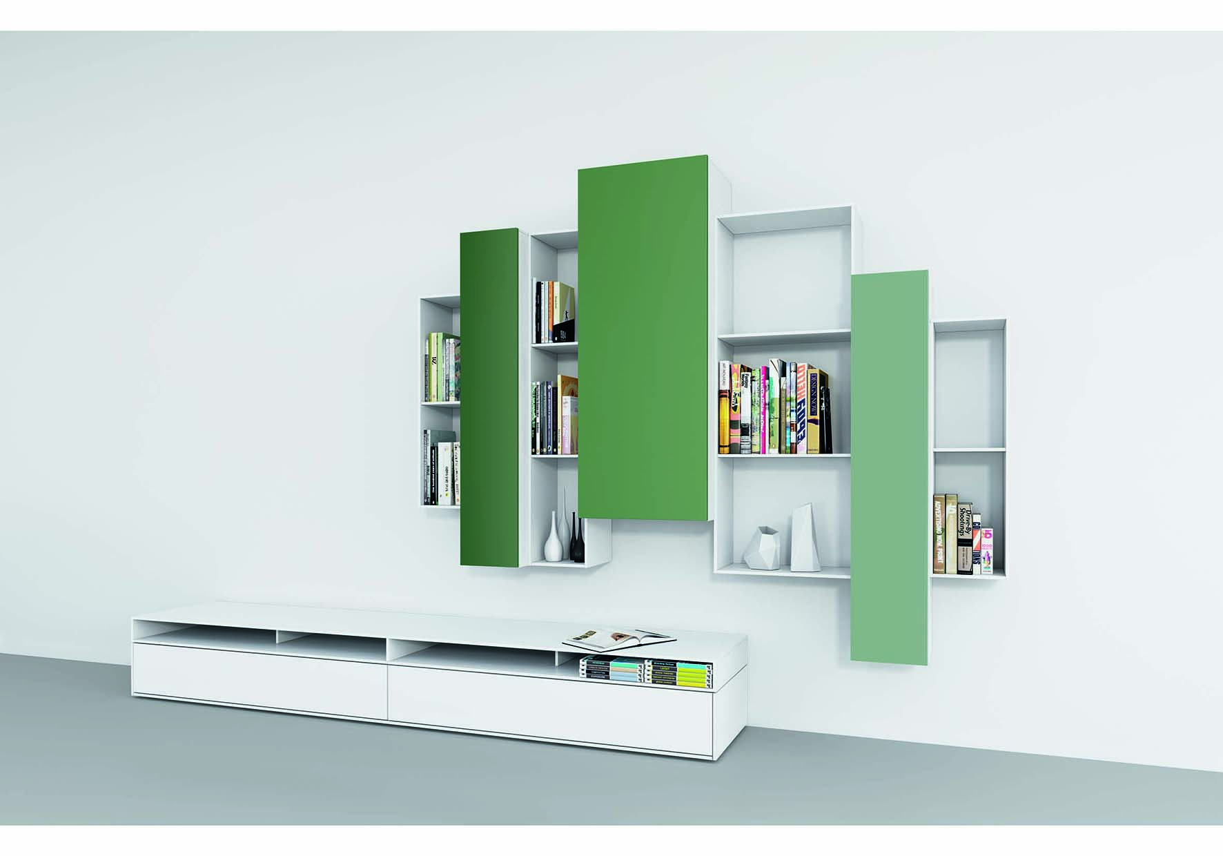 Moderne Wohnwände werden nach persönlichen Vorlieben zusammengestellt. So entstehen oft individuelle Wandpuzzle. Foto: VDM/interlübke