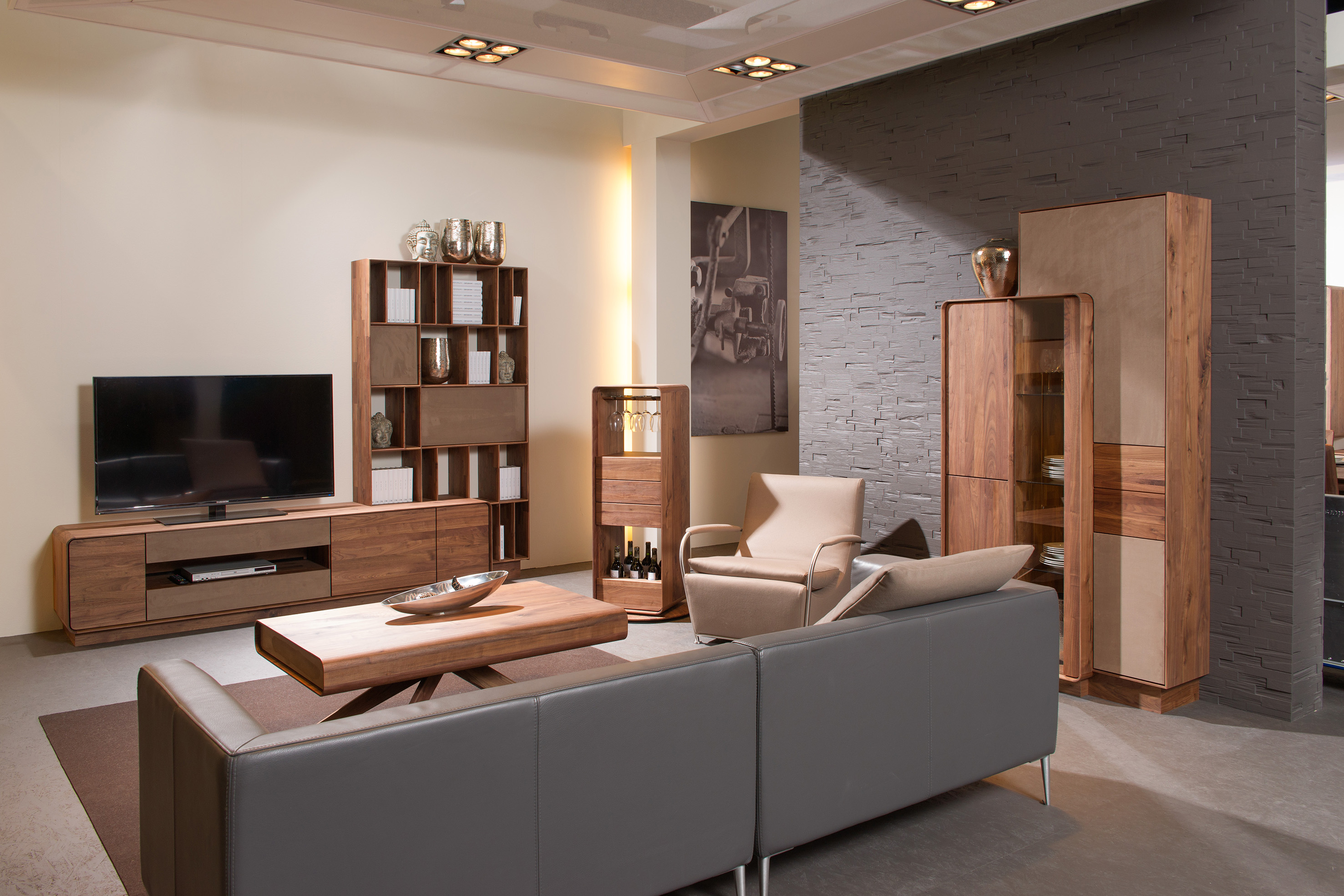 „Filigrane Massivholzmöbel mit eleganten Rundungen und Lederfronten“. Foto: IPM