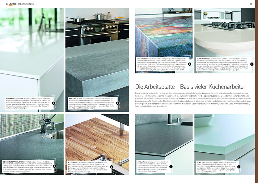 Ein perfekter Überblick: Der AMK Ratgeber Küche berät den interessierten Kunden auch bei der Wahl der für ihn optimalen Arbeitsplatte. (Foto: AMK)