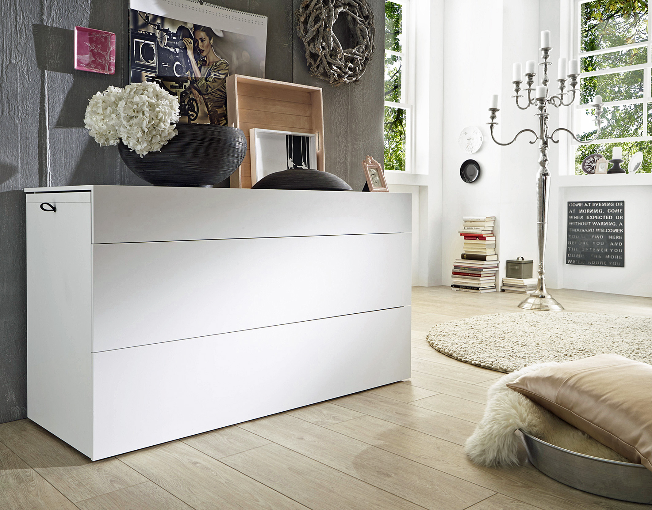 Bild 2: Wer ins Möbelhaus geht, fährt meist mit Deko-Artikeln im Gepäck heim. Sideboards kommen als Mitnahmemöbel in Frage. VDM/Die Collection