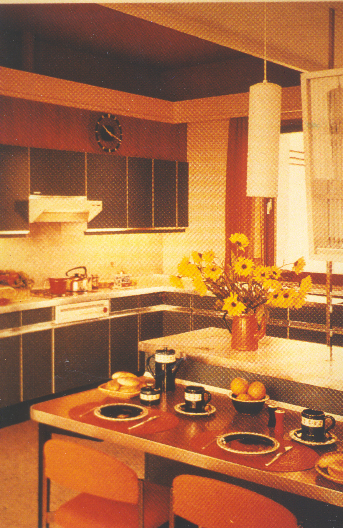 Typische Küche in den beliebten Farben und Formen der 1970er Jahre mit kleiner Essecke. (Foto: AMK)