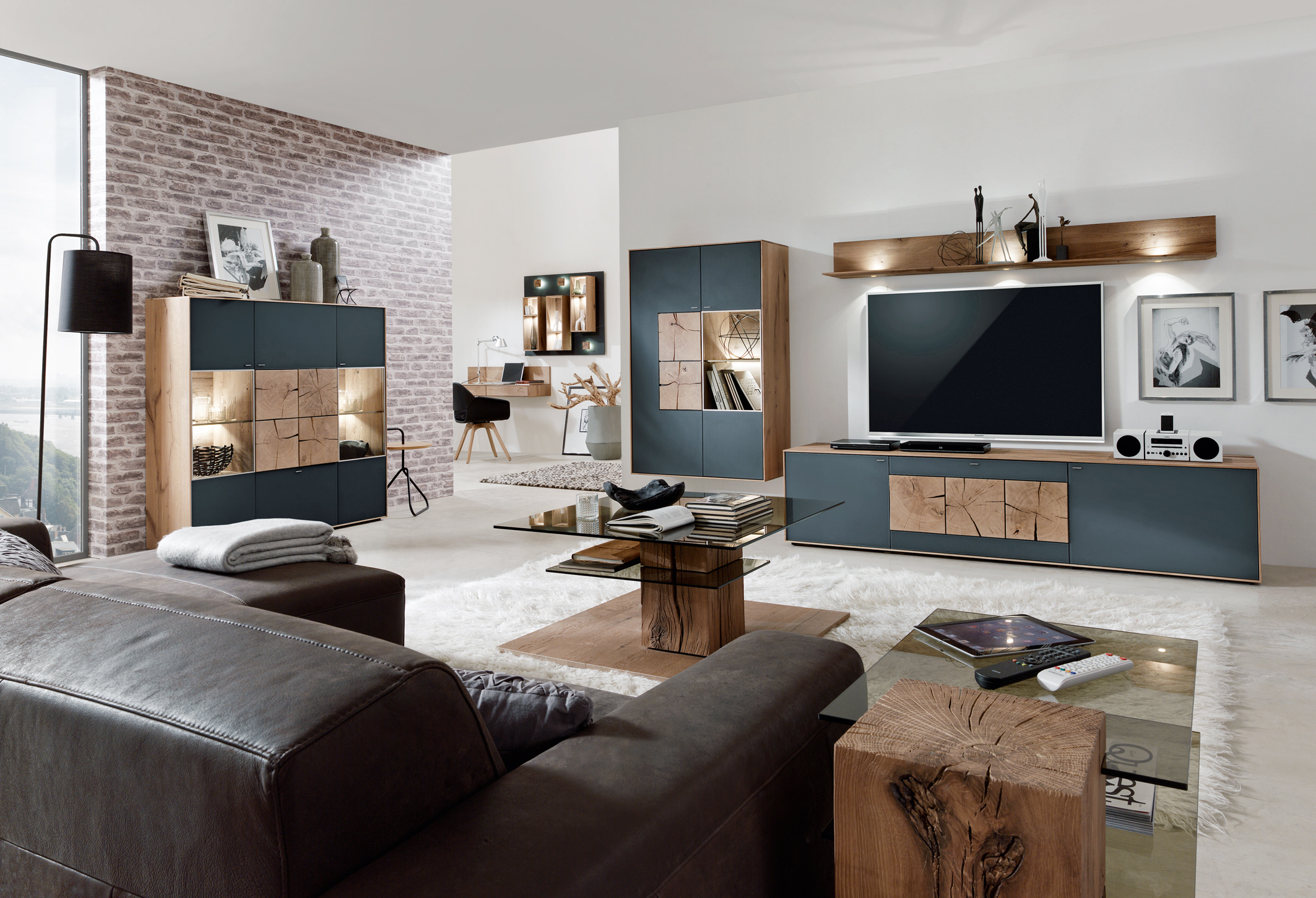 Bild: Heimkino inszeniert auf Wildeiche. Foto: IPM/Hartmann Massivholmöbel