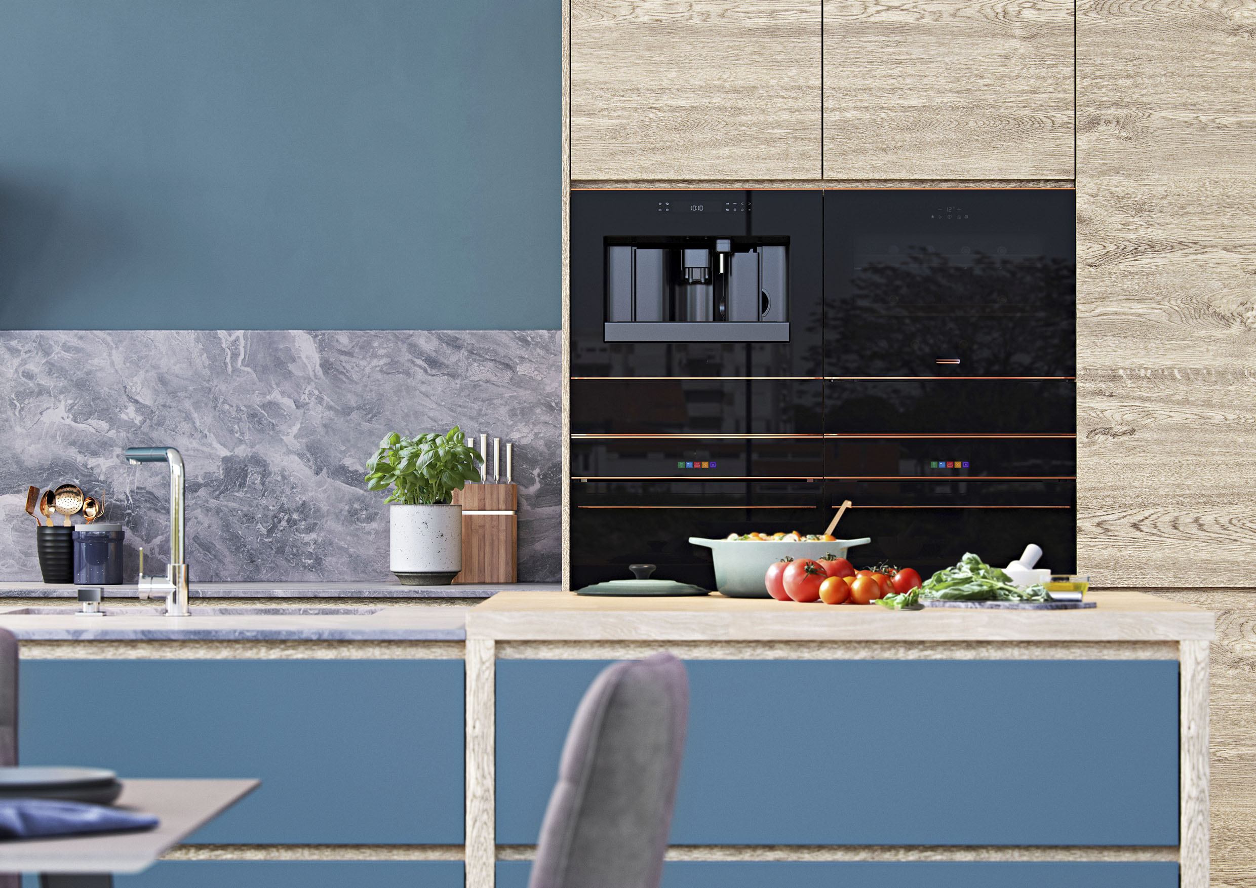 In den neuen Wohn-Koch-Ess-Landschaften sind Dusty Colours en vogue – elegante, dunkle, matte Farbtöne, vorzugsweise in Schwarz. Für viele gilt es schon als das „neue Weiß“ in der Küche. Black wirkt dabei keineswegs monoton, triste oder gar düster. Das Gegenteil ist der Fall: Die neuen stylishen Einbaugeräte mit ihren hochwertigen Oberflächen in schwarzem Sicherheitsglas und Design-Elementen in Black oder Dark Inox – gebürsteter und schwarz bzw. dunkel eloxierter Edelstahl – sowie ganz neu mit samtmatten Carbon-Beschichtungen (diamantähnliche Kohlenstoffschichten) strahlen Würde, Eleganz, Präsenz und auch etwas Geheimnisvolles aus.