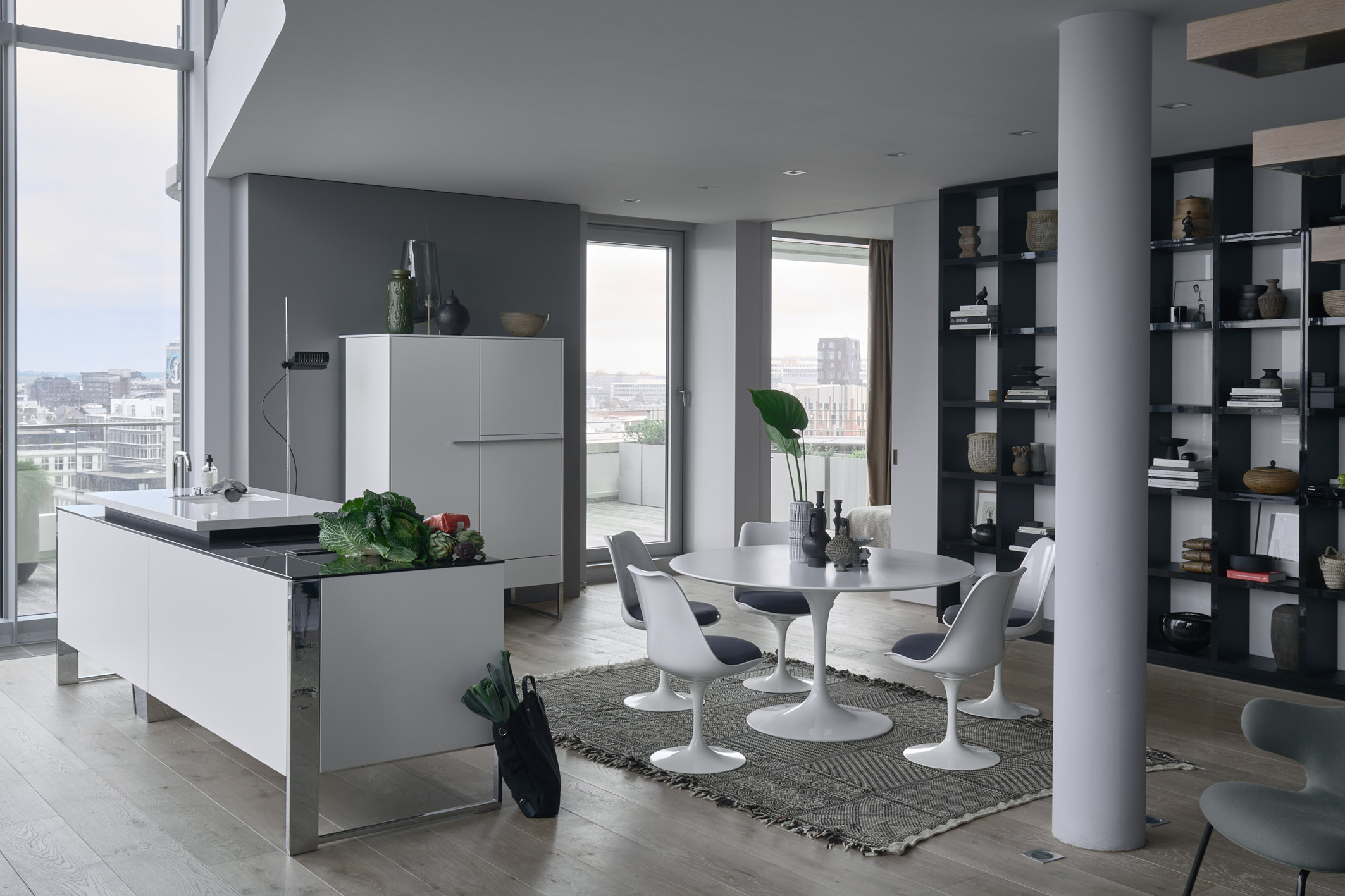 Modul-Küchen gibt es in den unterschiedlichsten Ausführungen; zum Beispiel als höhenverstellbare Tischmodule aus pulverbeschichtetem Stahlrohr mit und ohne Laufrollen, die sich individuell konfigurieren lassen – was ihre Arbeitsflächen, Spüle und Armatur, Auszüge, Schubkästen und Zwischenböden betrifft. Ergänzt werden sie von offenen und geschlossenen Regal- und Technik-Modulen in verschiedenen Höhen, in die sich kleinere kompakte und große Hausgeräte miteinander kombiniert inte¬grieren lassen. Eine andere Möglichkeit sind vorgefertigte Küchen in Metall, von der Mini-, Midi- bis zur Maxi-Version. Oder Schrankküchen, die sich hinter blickfangenden Möbelfronten verbergen und erst in Erscheinung treten, sobald die großen Pocket Doors (Einschubtüren) geöffnet und komplett unsichtbar im Multifunktionsschrank „versenkt“ werden. Attraktive, auf Wunschmaß gefertigte Side-, High- und Lowboards, beleuchtete Regalsysteme – freistehend, deckenhängend oder für die Wand – und Paneelwände ergänzen das modular zusammengestellte Lifestyle-Ensemble. Und im Mix mit einem schönen Erbstück oder anderen Designer-Möbeln und außergewöhnlichen Solitären ergeben sich dann jene traumhaften Individualräume, die – ob klein oder groß – ihren neuen Eigentümern sehr viel Freude machen. (AMK)