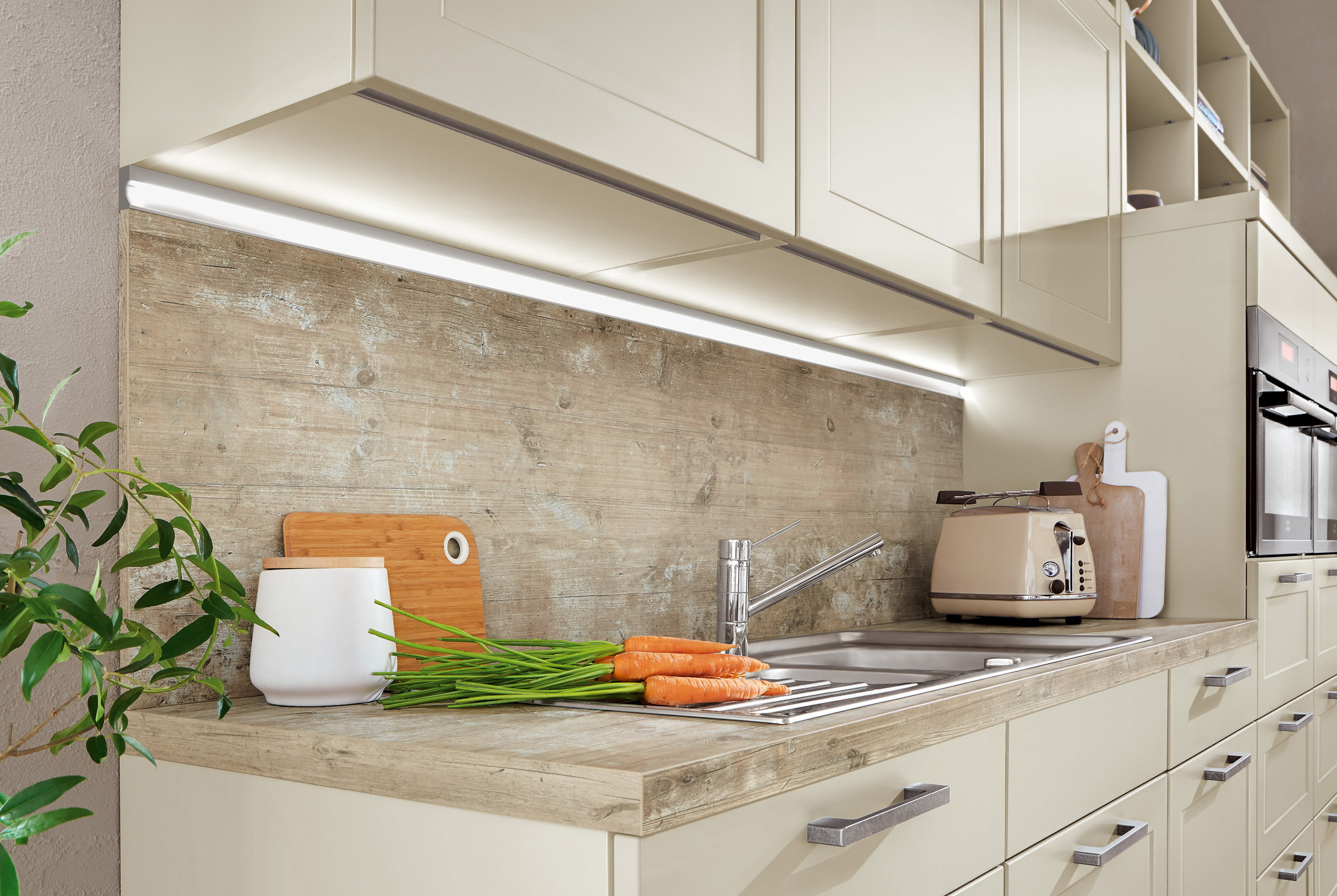 Bild 2: Funktionslicht-Klassiker: Lichtleiste unterm Oberschrank der Küche. Foto: VDM/Nobilia
