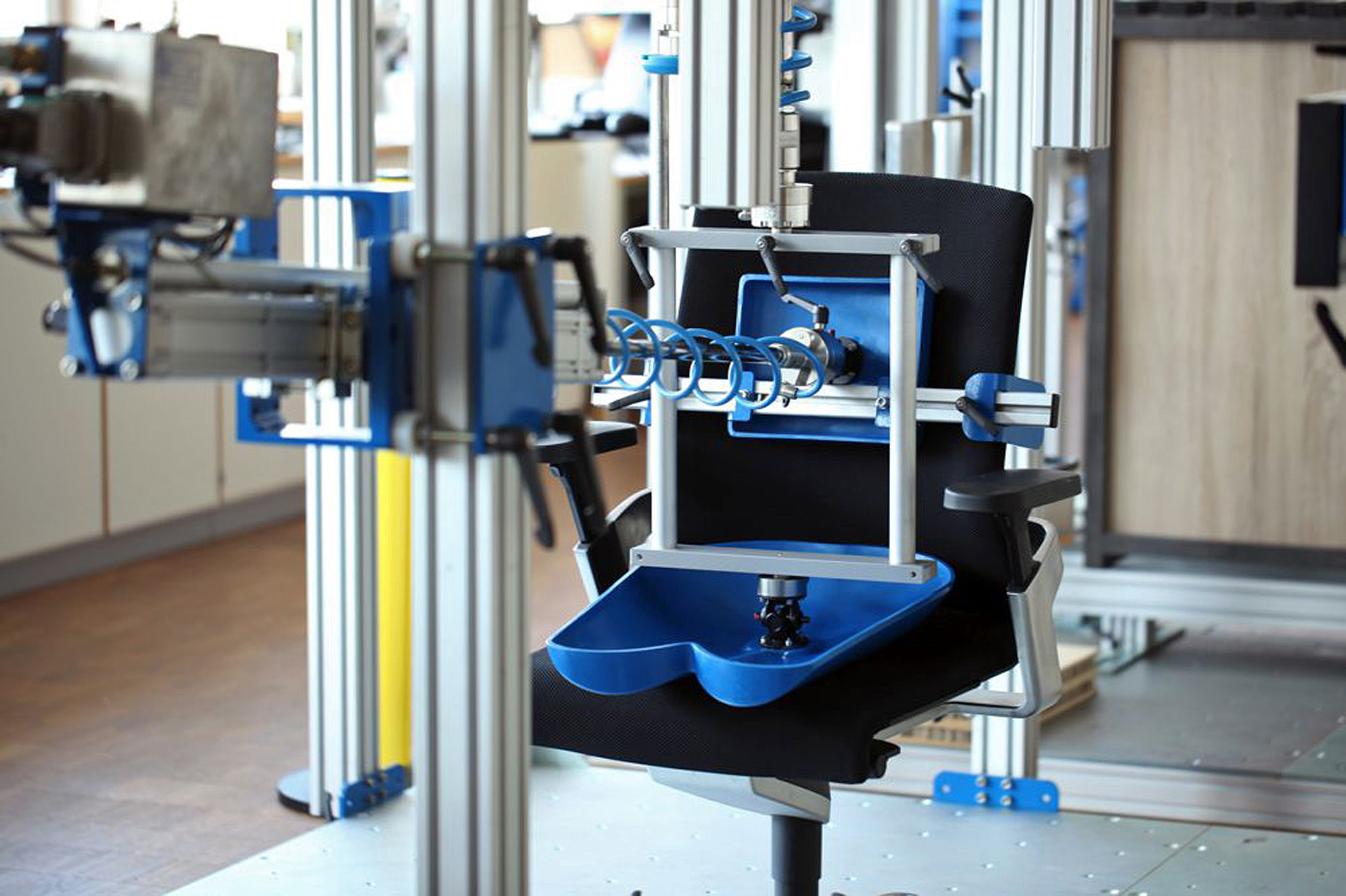 Die Härtetests finden in eigens dafür vorgesehenen Prüflaboren statt – bei 23 Grad Celsius und 50 Prozent Luftfeuchtigkeit, um den durchschnittlichen Anforderungen in der Realität möglichst nahe zu kommen. Funktionsprüfungen, Belastungstests, Dauerhaltbarkeitsprüfungen und vieles mehr steht auf dem Stundenplan. Zigtausend Mal werden Oberflächen bei maschinellen Scheuertouren auf die Probe gestellt, Konstruktionen durch die Bewegung von Hydraulikstempeln belastet oder Scharniere von einer in die andere Richtung bewegt.