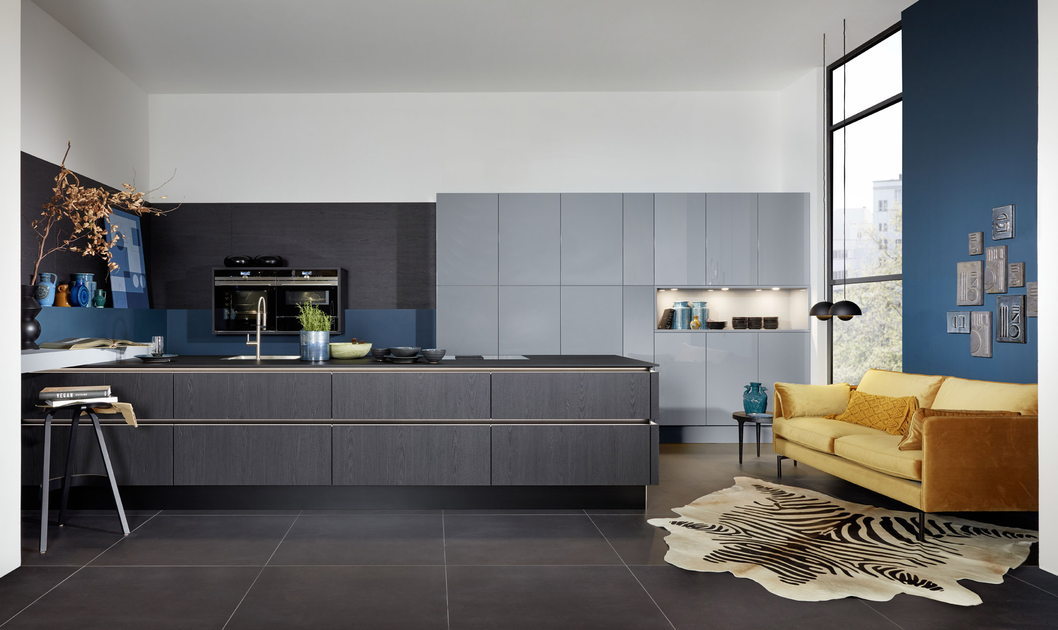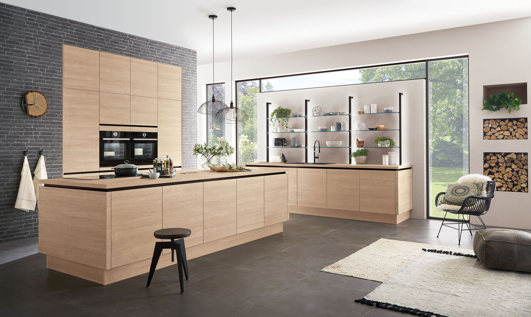Deshalb beginnt man am besten mit der Auswahl des persönlich bevorzugten Küchenstils: Das kann zum Beispiel eine grifflose, moderne Planung sein, im hellen, frischen Scandinavian Design, im Industrial Loft Style mit markantem Werkstattcharakter, im charmanten Landhaus- oder Vintage-Look oder vielleicht in Retro-Optik als Hommage an die 1950er/1960er Jahre. Auch stellt sich die Frage: Soll es eine im Trend liegende offene Wohnküche sein oder lieber ein separater Raum? Weiter geht es dann mit der Grundform der neuen Küche (z. B. L-, U-förmig, mit Insel, ein- oder zweizeilig) sowie der Mate¬rialauswahl – zunächst der Fronten, denn sie sind es, die das Gesamtbild und die Anmutung einer Küche prägen – bis hin zum optimalen Lichtkonzept, das sowohl helles Arbeits- als auch stimmungsvolles Ambientelicht beinhaltet.