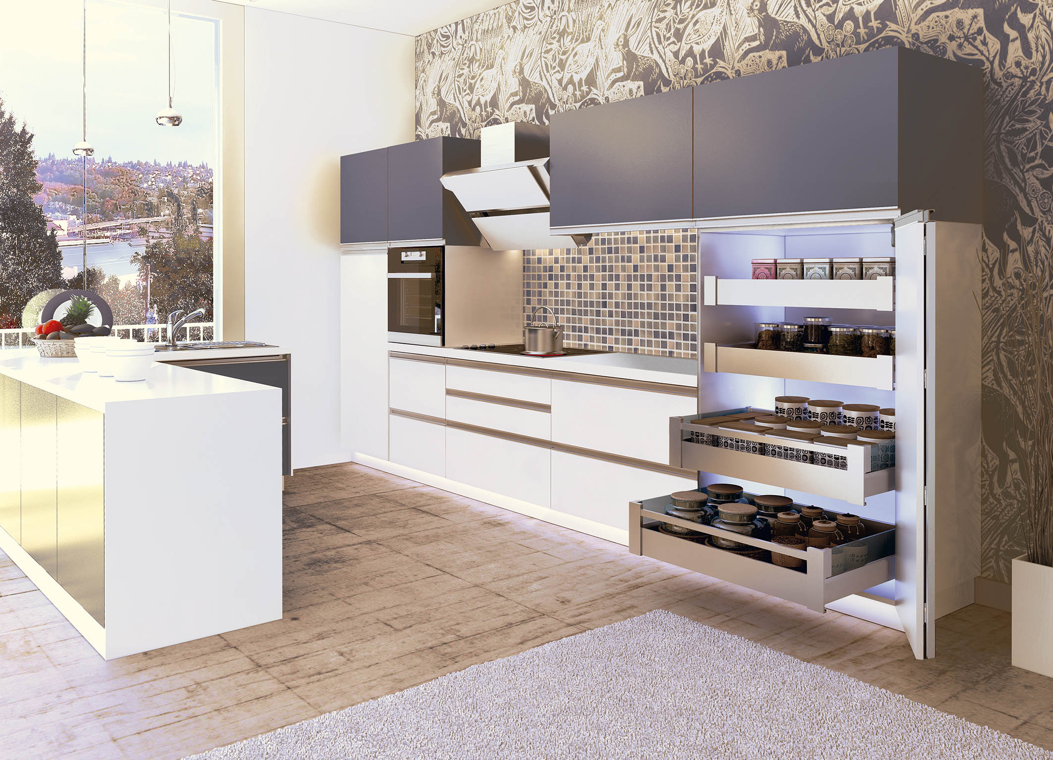 Ein weiterer Küchenstandard befasst sich mit den am Markt angebotenen Schrankvarianten und einer gut durchdachten Stauraumplanung; ebenso mit den hochkomfortablen und hochfunktionalen Innenausstattungen der Küchen- und Vorratsschränke sowie mit einer zeitgemäßen, komfortablen Auszugstechnik und Öffnungsunterstützung. Beim Küchenspezialisten kann man sich die verschiedenen Bediensysteme zum Öffnen und Schließen griffloser Auszüge, Hochschränke und Türen ansehen und vor Ort gleich ausprobieren.