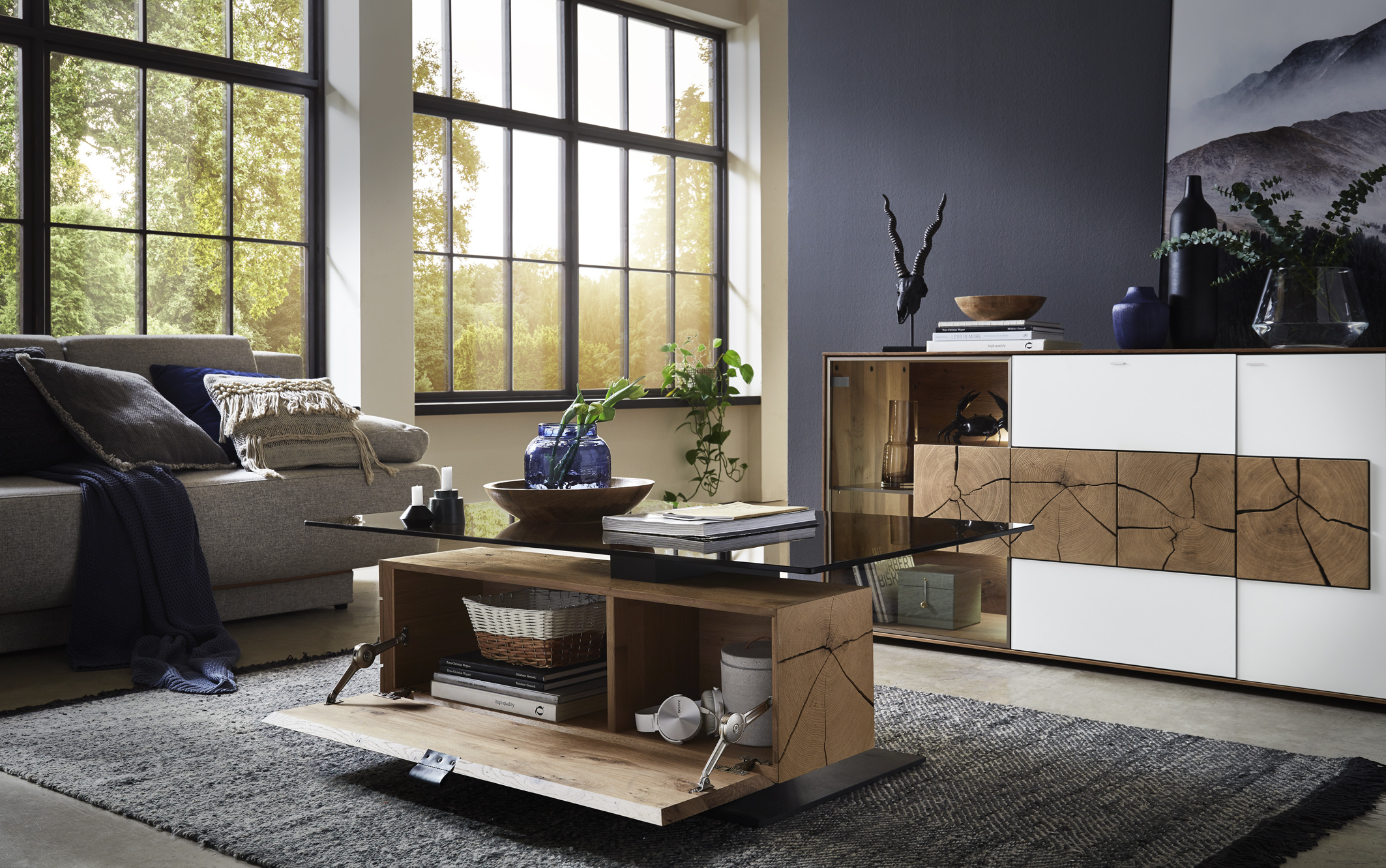 Bild 2: Die kreisrunden Jahresringe lassen sich auf der Frontseite des Sideboards gut erkennen. Foto: IPM/Hartmann Möbelwerke