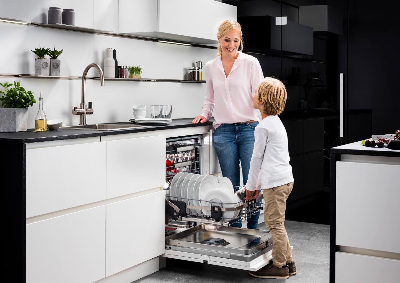 Eine ebensolche Erfolgsbilanz stellen die Geräte – ob als vollintegriertes, teilintegriertes, Unterbau- oder Standmodell – auch in Sachen Komfort auf. Dazu zählen Ausstattungsvorzüge wie beispielsweise ein spezieller Schutz für Glaswaren durch eine besonders schonende Reinigung und Trocknung. Oder eine zuschaltbare Option, mit der sich die Spüldauer ganz erheblich verkürzen lässt, wenn es einmal besonders schnell gehen soll. Auch eine Hygiene-Funktion, z. B. für Haushalte mit Kleinkindern oder Allergikern. Hierbei wird das Wasser über einen längeren Zeitraum auf bis zu 70 °C erhitzt. Besonders stark verschmutztes Spülgut muss nicht manuell vorgereinigt werden, sondern kommt gleich direkt in den Unterkorb in einen bestimmten Bereich.