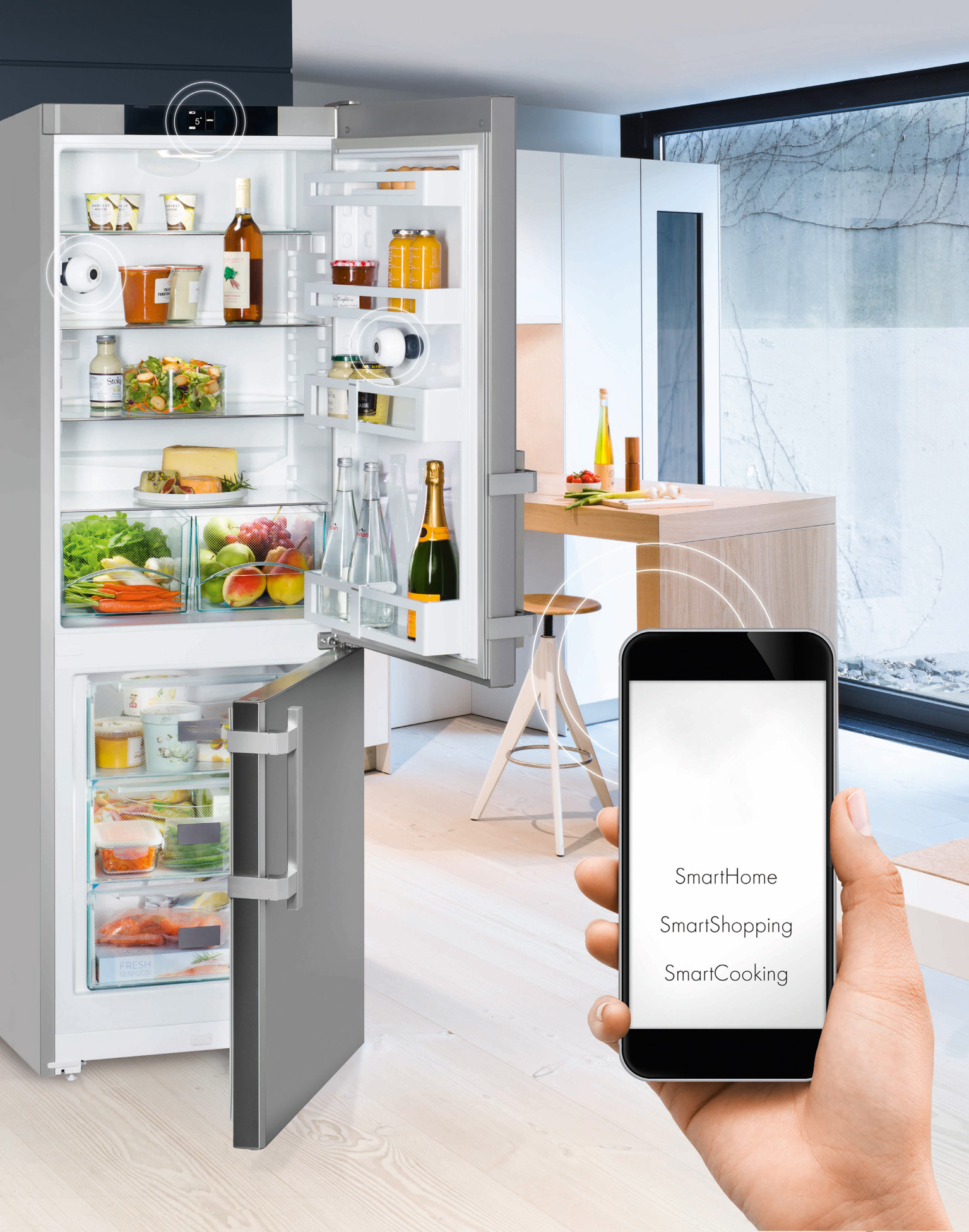 Darüber hinaus ist es im Rahmen von Smart Home möglich, Backofen oder Kühlschrank mit dem Smartphone zu vernetzen und per App zu bedienen. So lässt sich etwa selbst von unterwegs ein Blick in den Kühlschrank werfen, um den Bedarf an Lebensmitteln für den nächsten Einkauf festzustellen. Möglich wird dies durch eine Kamera, die den Inhalt fotografiert.