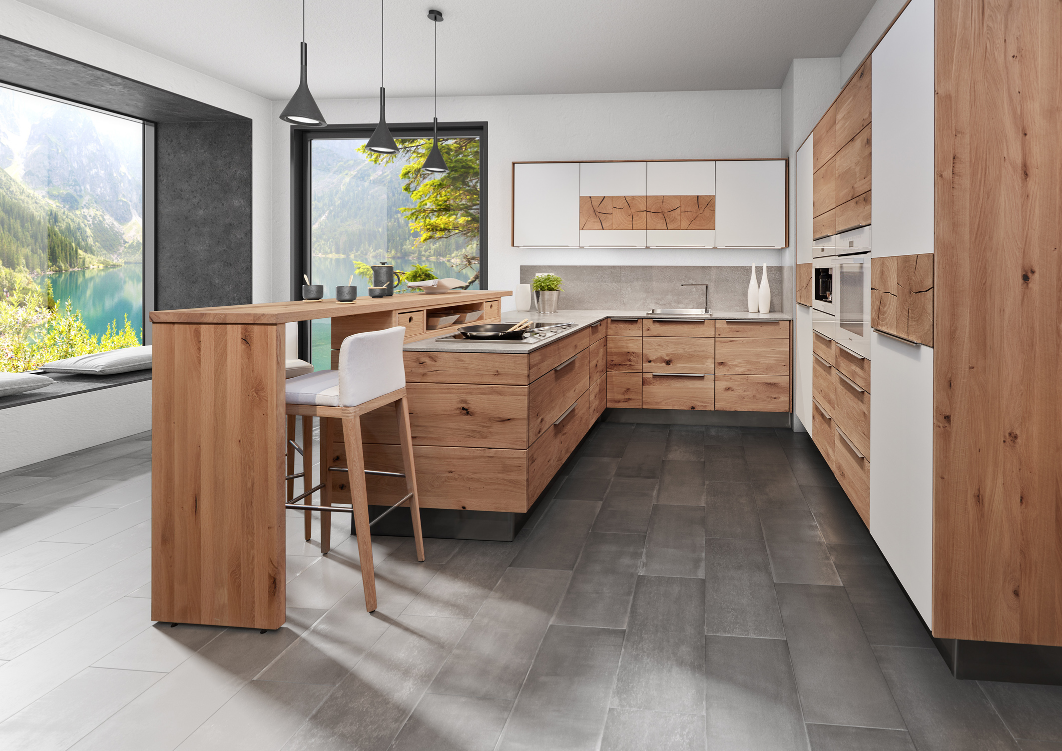 Sie drängt sich nicht auf, aber setzt dennoch gekonnt Akzente. Fein gemaserte Oberflächen mit markanten Astlöchern und individueller Struktur sowie samtweicher oder angerauter Haptik – all das bietet eine Küche aus massivem Holz. „Eine Massivholzküche schafft ein schönes und natürliches Umfeld, das Geborgenheit sowie Behaglichkeit und Wohnlichkeit ausstrahlt“, erklärt Andreas Decker, Geschäftsführer der Möbelwerke A. Decker. Die Kombination aus dem natürlichen Werkstoff Holz und den samtmatten Glasfronten machen die Küche zu einem angesagten Lifestyle-Produkt. „Die durchgehende Verwendung einer Holzart und eines Designstils ist uns dabei sehr wichtig“, betont Decker. Besonderer Wert wurde auch auf Schubkästen und Einlagen für Besteck und Geschirr sowie praktische Vollauszüge, kleine Holzboxen für zusätzlichen Stauraum in den Schubkästen und sensorgesteuerte Auszüge für das Mülltrennsystem gelegt. Alles hat einen vorgesehenen Platz, damit die Küche im Alltag auch funktional überzeugt.