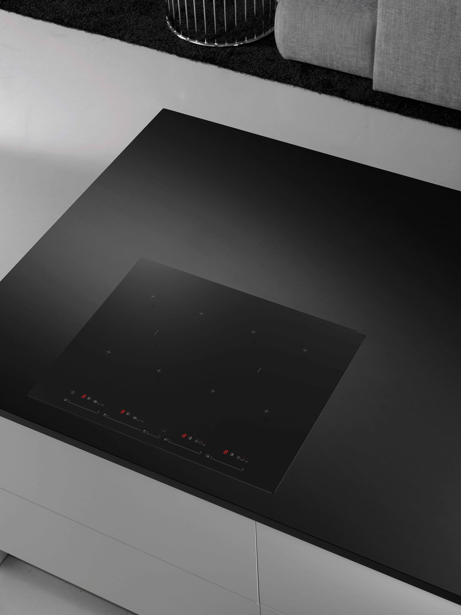 Rahmenloses Induktionskochfeld, u. a. mit Sensortasten und digitaler Kochstufenanzeige, Kindersicherung, Restwärmeanzeige und einer speziellen Booster-Funktion für ein schnelles Erreichen der eingestellten Temperatur. (Foto: AMK)