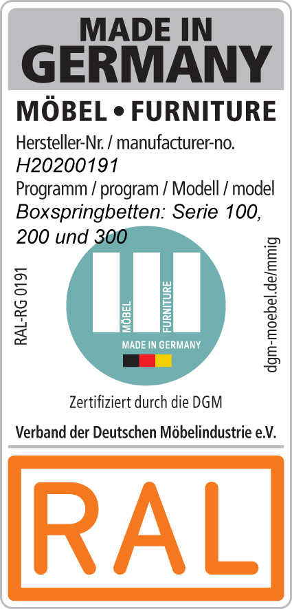 Ein heute sehr wichtiger Produktbereich sind Boxspring- und Polsterbetten. Diese stammen nicht nur zu 100 Prozent aus deutscher Fertigung, sondern sind entsprechend der DGM-Kriterien auch umfassend auf Gesundheits- und Umweltverträglichkeit, Langlebigkeit und Sicherheit sowie eine einwandfreie Funktion hin getestet. „Gerade bei Boxspringbetten ist es wichtig, dass der Endverbraucher die Qualität erhält, die er sich von dem komfortablen Bettsystem erhofft. Bei den Herstellern der DGM können sie sich dessen sicher sein“, so Winning.