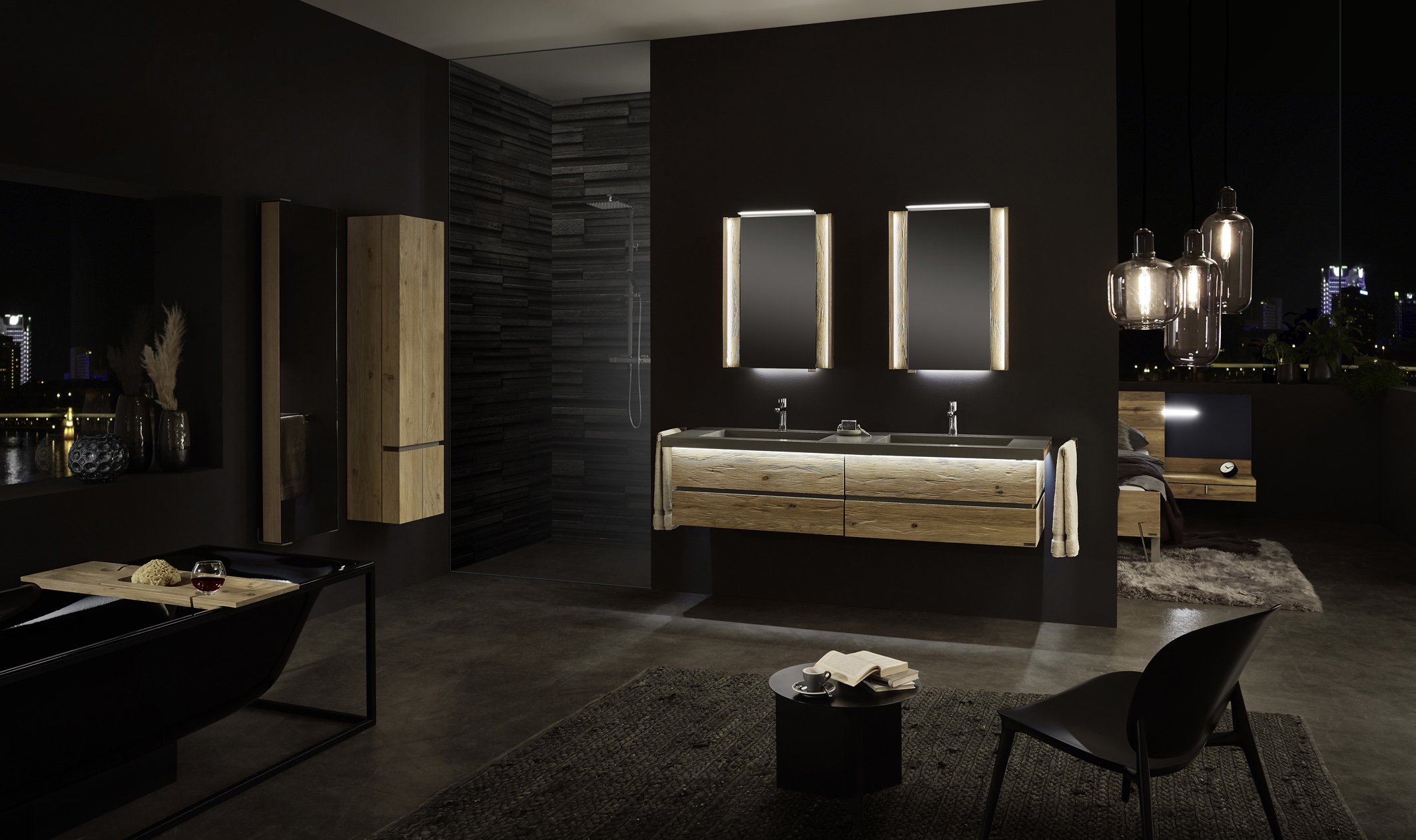 Lichtbänder mit indirekter Beleuchtung können die massiven Badezimmermöbel ins richtige Licht setzen. Foto: IPM/Thielemeyer