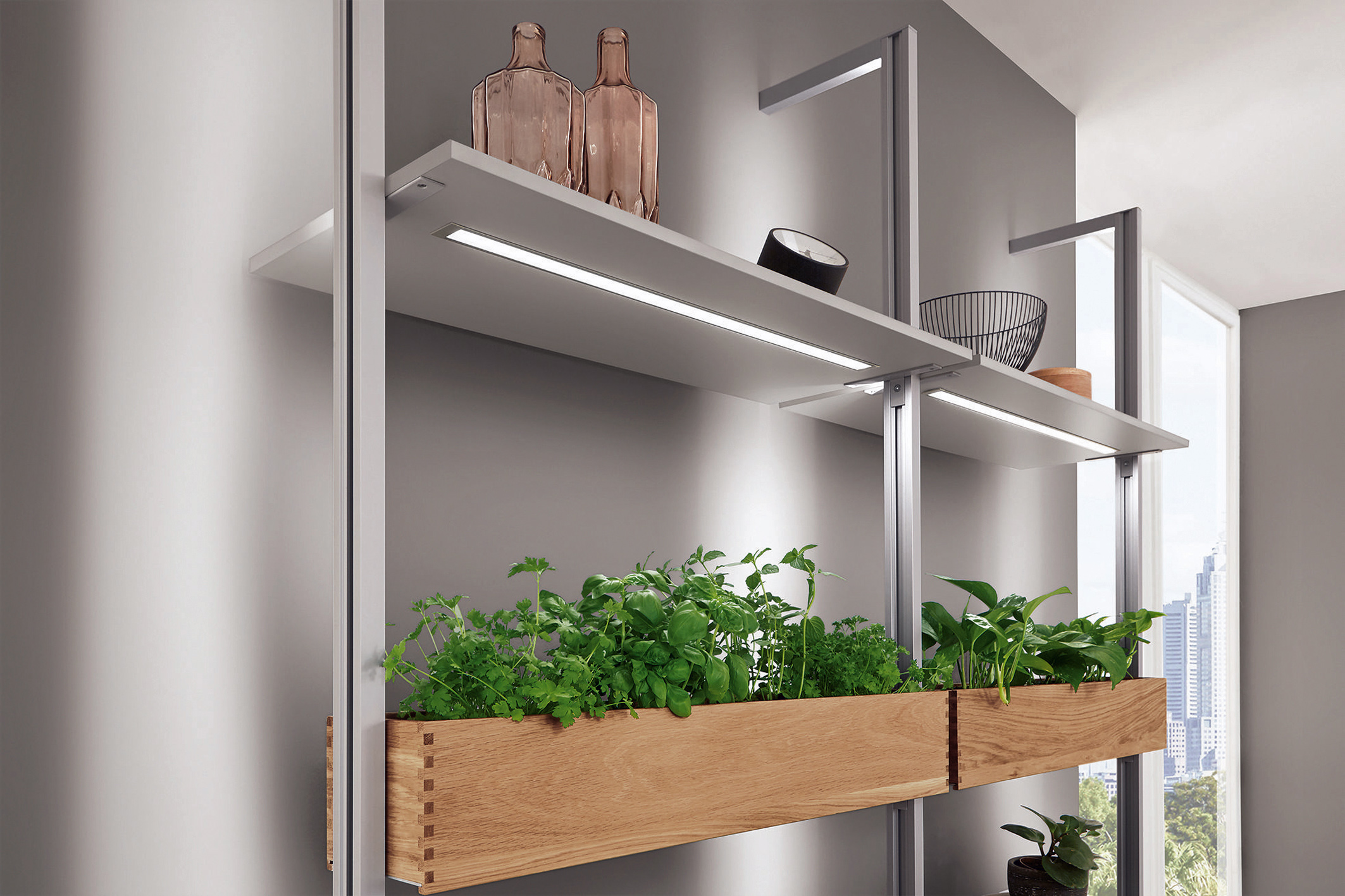 Ein Kräutergarten in der heimischen Küche lässt sich auch mit Hilfe spezieller Pflanzregale bewerkstelligen. Dabei werden hochwertige Pflanzkästen aus Holz in ein Stollenregalsystem eingehängt. Mit einer Kunststoff-Kräuterschale bestückt können sie etwa mit Basilikum, Thymian oder Rosmarin bepflanzt werden. Für das notwendige Licht sorgt eine spezielle, integrierte LED-Pflanzleuchte. So stehen das ganze Jahr über frische Kräuter zur Verfügung. (AMK)