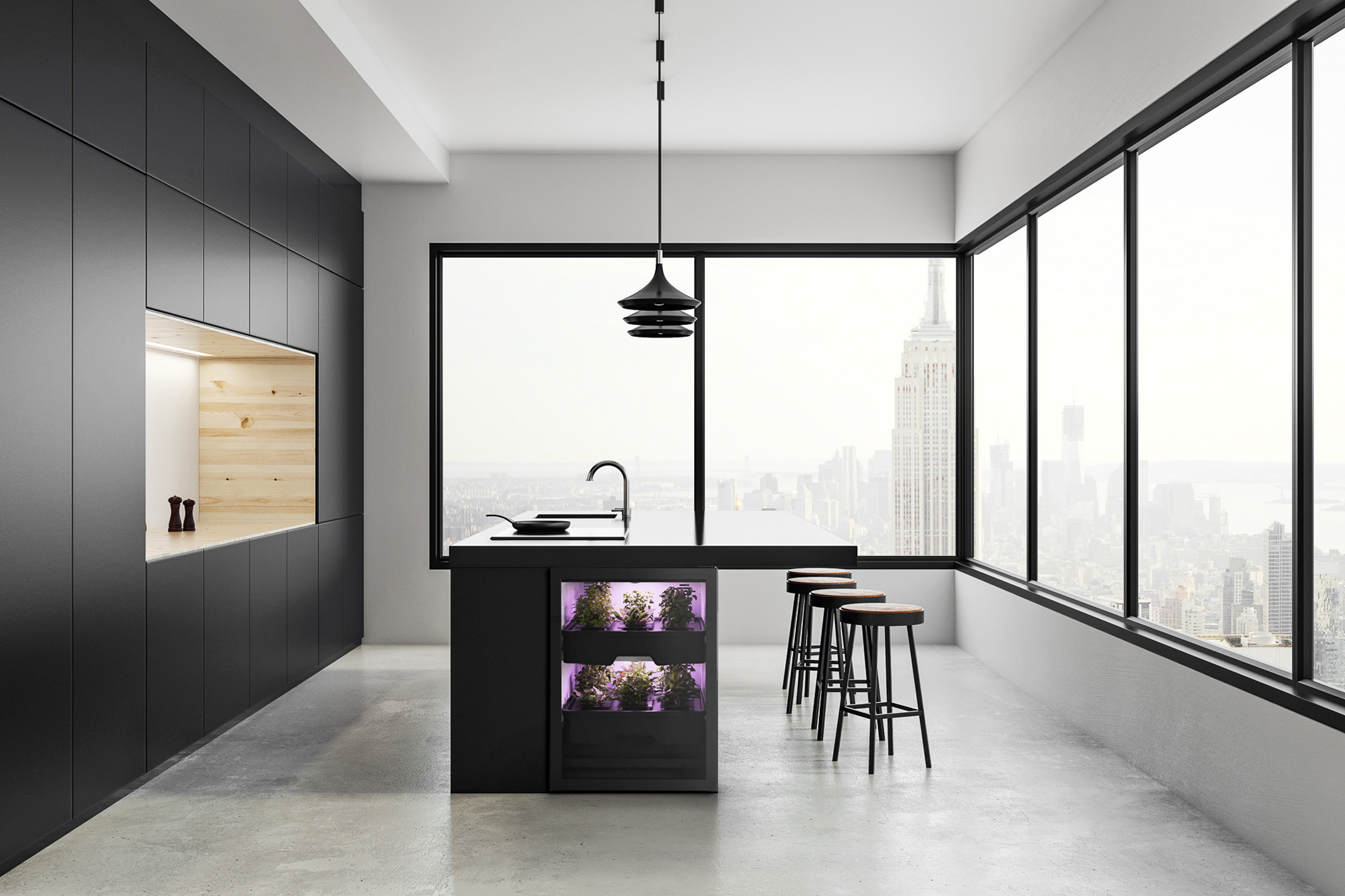 Auch in kleinen Indoor-Pflanzgärten lassen sich Kräuter und andere essbare Pflanzen in der heimischen Küche züchten. Das Gerät wird mit einer Nährstofflösung sowie mit vorgefertigten Samenkapseln aus Steinwolle bestückt. Darauf wird eine Haube mit einem automatisierten LED-Beleuchtungssystem gesetzt. Eine kleine Pumpe sorgt für die Bewässerung. Wenn die Pflanzen zu wachsen beginnen, fährt die Haube entsprechend in die Höhe. Bei guter Pflege können die Kräuter über einen längeren Zeitraum geerntet werden – vorausgesetzt, es wird nicht zu viel auf einmal abgeerntet.