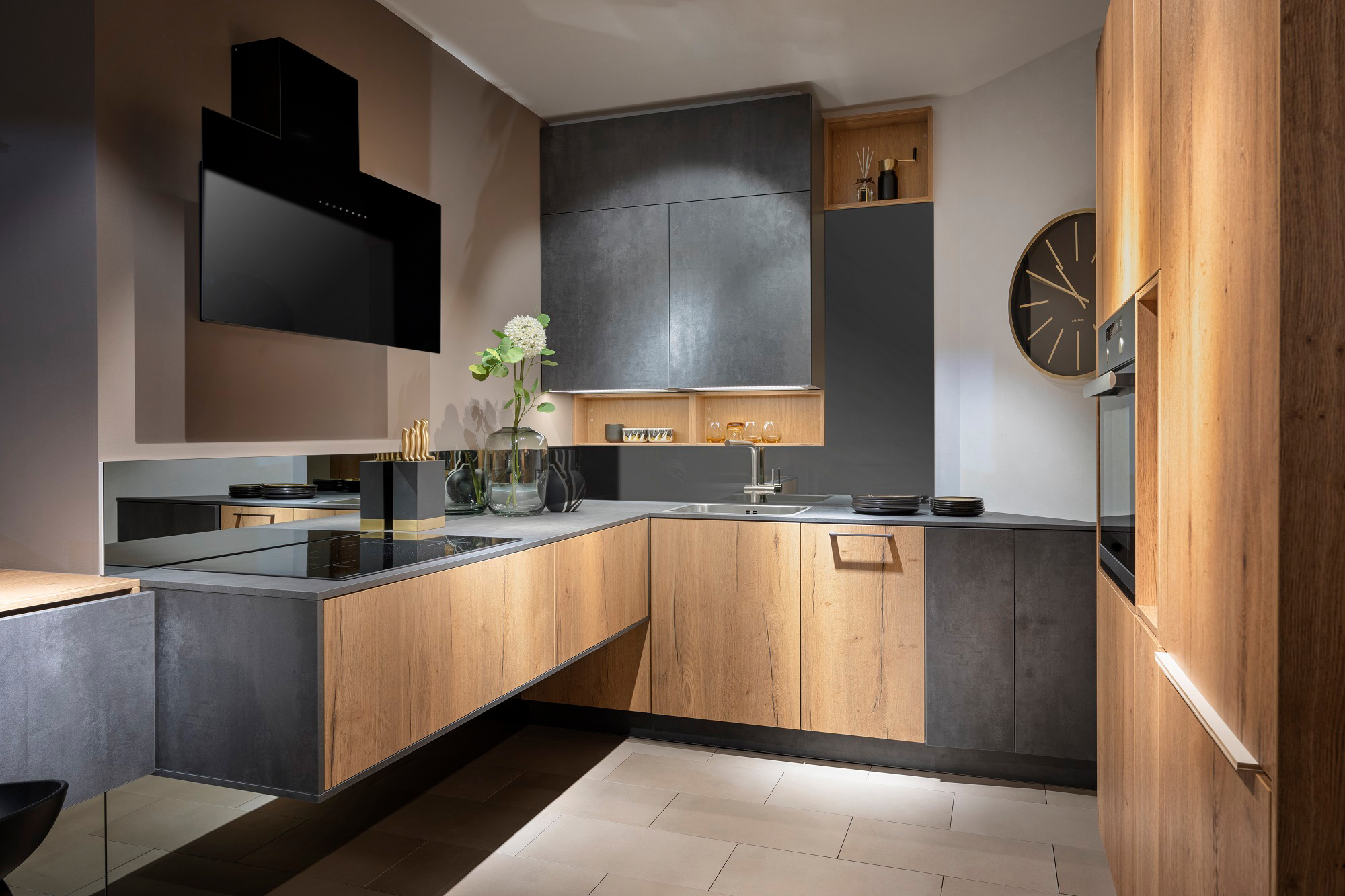 Viel Stauraum lässt sich auch durch geschicktes Planen in den sogenannten „toten“ Küchenecken generieren. Dafür gibt es spezielle Eckschränke mit innovativen Beschlägen und Auszugstechniken, die den Zugang zum Schrankinhalt ganz easy und komfortabel machen. Vom klassischen Karussellbeschlag bis hin zu eleganten, höhenverstellbaren Tablarauszügen, die beim Öffnen der Schranktür einzeln und vollständig aus dem Eckschrank herausschwenken.