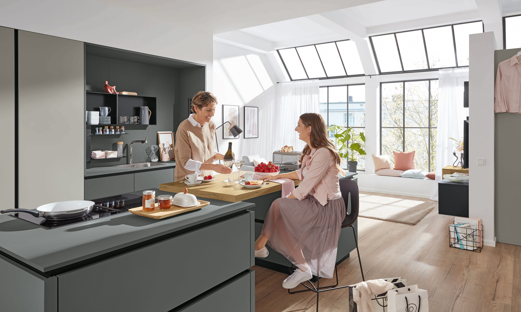 Mannheim, 09.06.2021. Was gibt es Schöneres, als sich von einem schicken und gemütlichen Essplatz aus an seiner neuen Traumküche zu erfreuen und dabei ein leckeres Menü in geselliger Runde zu genießen. Dazu ist nicht unbedingt viel Platz nötig, denn es gibt ebenso viele reizvolle Planungsideen für kleine(re) Lifestyle-Küchen wie für größere.