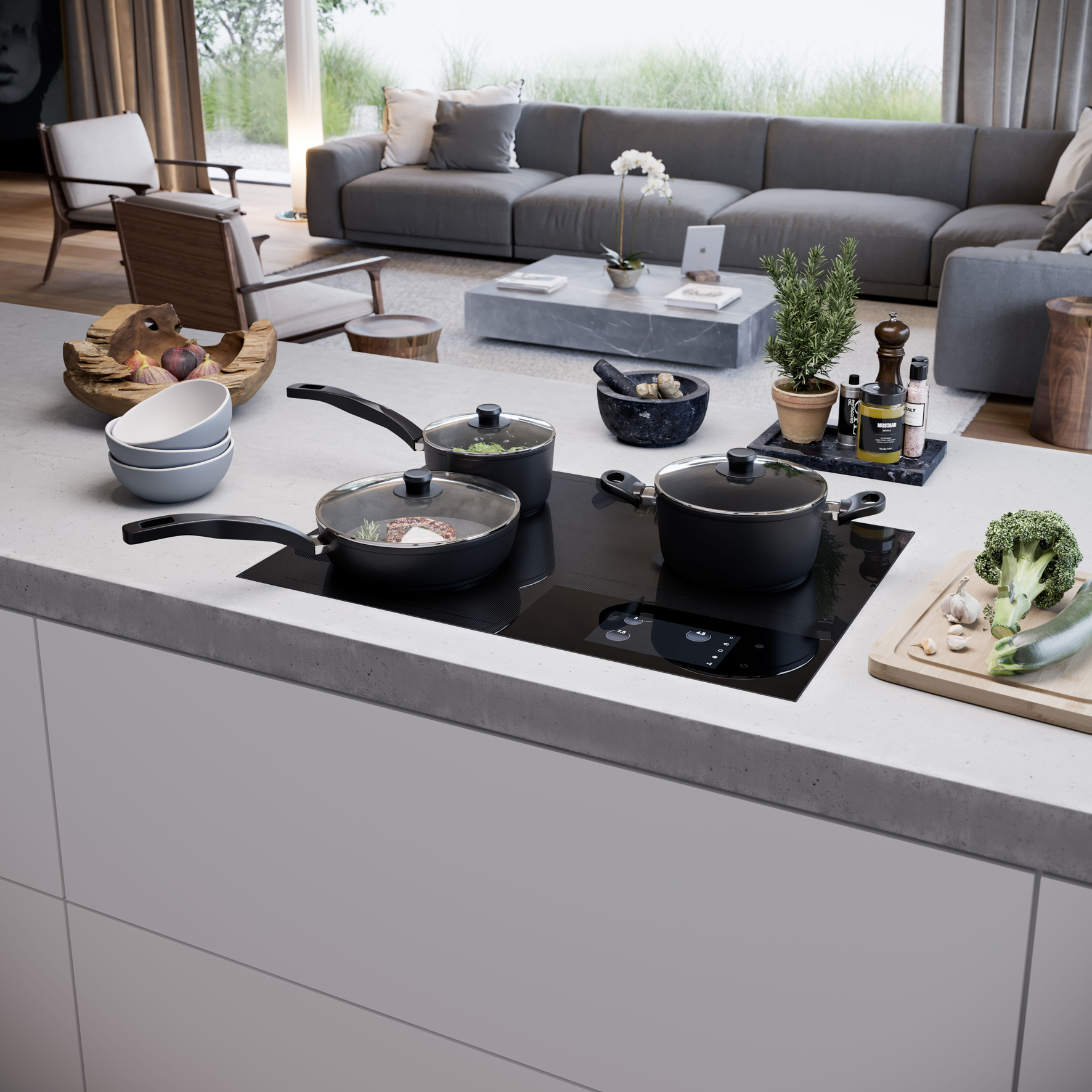 Klingelt es an der Haustür, sind eine Stop & Go- oder Pausen-Funktion eine tolle Sache. Sie fahren per Fingertipp alle aktiven Kochzonen auf die niedrigste Leistungsstufe herunter, so dass man sein Kochfeld kurzzeitig unbeaufsichtigt lassen kann. Ein erneuter Fingertipp genügt und alle zuvor eingestellten Leistungsstufen werden automatisch reaktiviert. Sollte das Induktionskochfeld während des Kochens und Bratens allerdings einmal versehentlich ausgeschaltet werden, so ist das kein Problem, denn alle Einstellungen werden innerhalb von Sekunden per Fingertipp wiederhergestellt. Als sehr praktisch erweist sich auch eine Warmhaltefunktion, mit der die fertigen Speisen auf Serviertemperatur gehalten werden – falls sich ein Familienmitglied oder der Besuch verspäten.