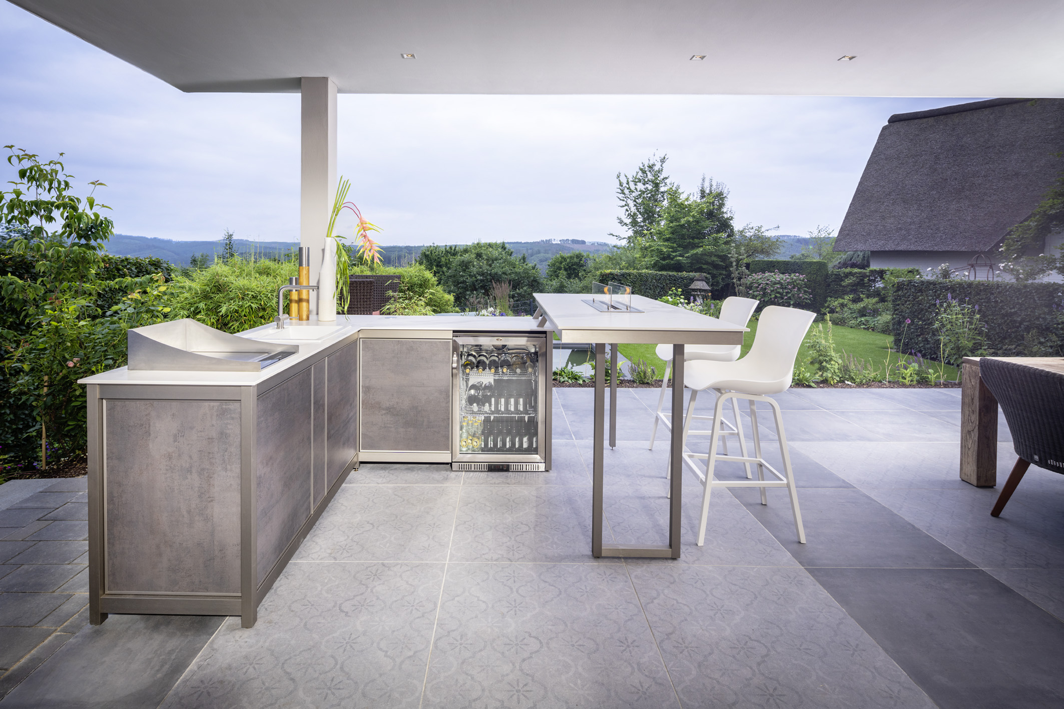 Für Outdoorküchen kommen witterungs- und UV-beständige Materialien sowie eigens für den Outdoor-Gebrauch konzipierte Geräte und Zubehörteile zum Einsatz. Die Außenküchen können individuell gemäß den jeweiligen Kundenwünschen und Platzverhältnissen konzipiert werden. Dabei werden entweder einzelne Module - oftmals auf Rollen und damit besonders flexibel - kombiniert oder komplette Küchenzeilen beziehungsweise Kochinseln zusammengestellt.