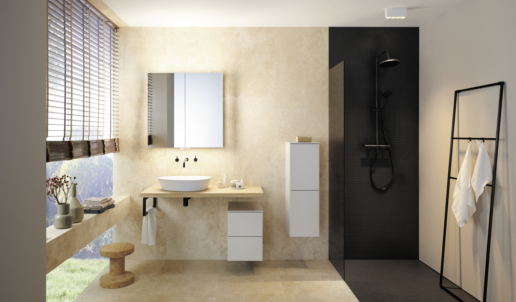 Zu feuchte Raumluft, die auf Dauer Schimmelbildung begünstigt und Möbeln zusetzen kann, ist gerade nach dem Duschen oder Baden leicht an einem beschlagenen Spiegel oder Fenster zu erkennen. Eine Lüftungsanlage hat nun allerhand zu tun, um feuchte gegen trockene Luft auszutauschen und wieder ein gutes Raumklima herzustellen. Wo manuelles Stoßlüften durch ein Fenster möglich und nötig ist, sollte dieses nach jedem Duschen oder Baden für etwa zehn Minuten geöffnet werden – und zwar vollständig, nicht in Kippstellung. Nach einem ausgiebigen Dampfbad oder bei Wasserspritzern sei es zudem ratsam, Möbeloberflächen aktiv trocken zu wischen, sagt DGM-Geschäftsführer Jochen Winning. Rückstände von Zahnpasta oder Zerstäubern und erst recht von aggressiven Chemikalien wie Scheuermitteln oder Haartönung sollten ebenfalls besser früher als später von Möbeloberflächen entfernt werden. Nasse Handtücher und Waschlappen sollten nicht in der Ecke hinter der Tür oder gar länger auf einer Möbeloberfläche liegen gelassen, sondern gut durchlüftet zum Trocknen aufgehängt werden.