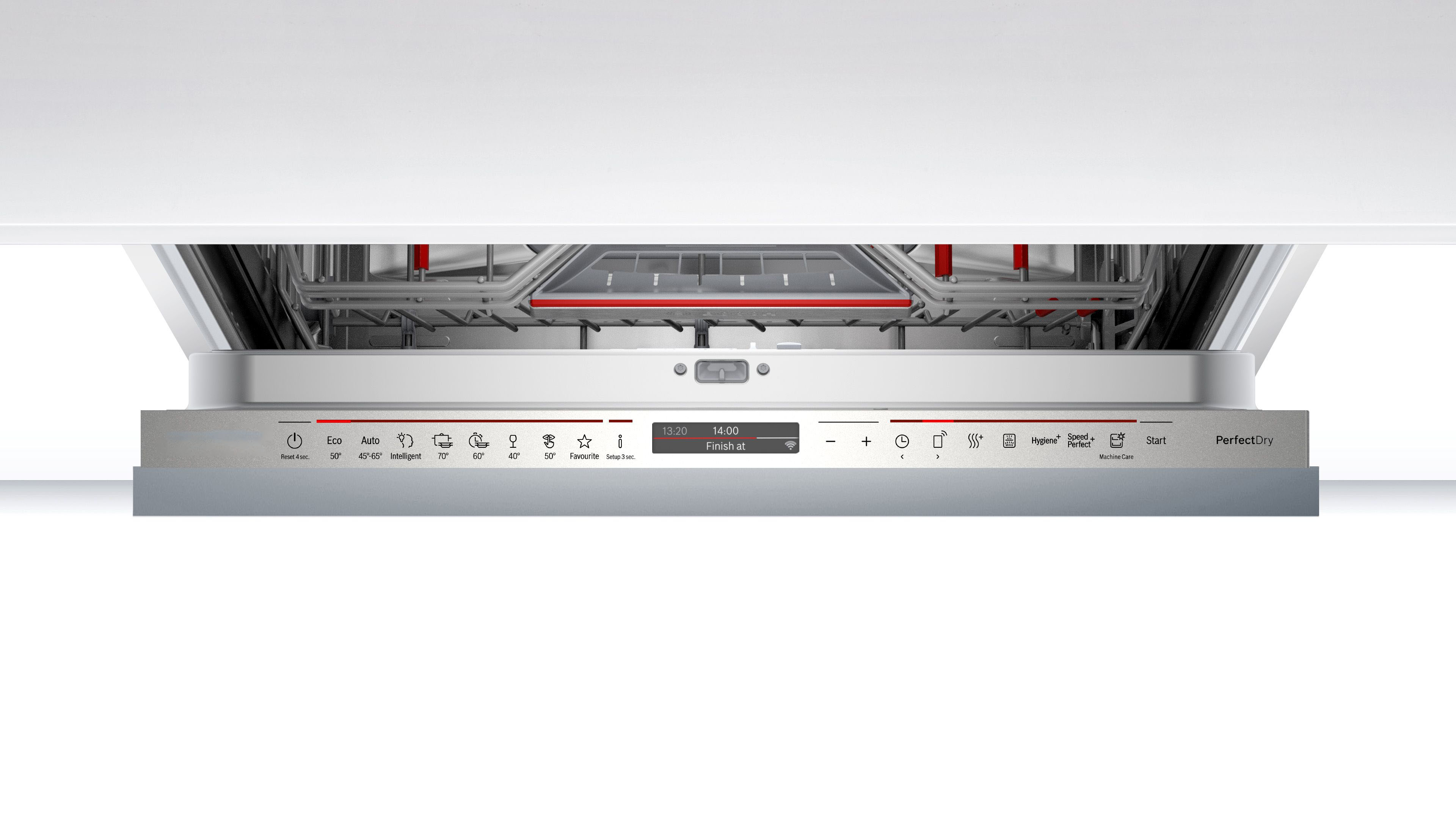 Dieses vollintegrierte Modell eignet sich z. B. auch für einen komfortablen und ergonomischen Hocheinbau. Es bietet u. a. ein Automatik-, Eco-, Selbstreinigungs-, Intensiv 70 °C- und ein 27-Minuten-Programm. (Foto: AMK)