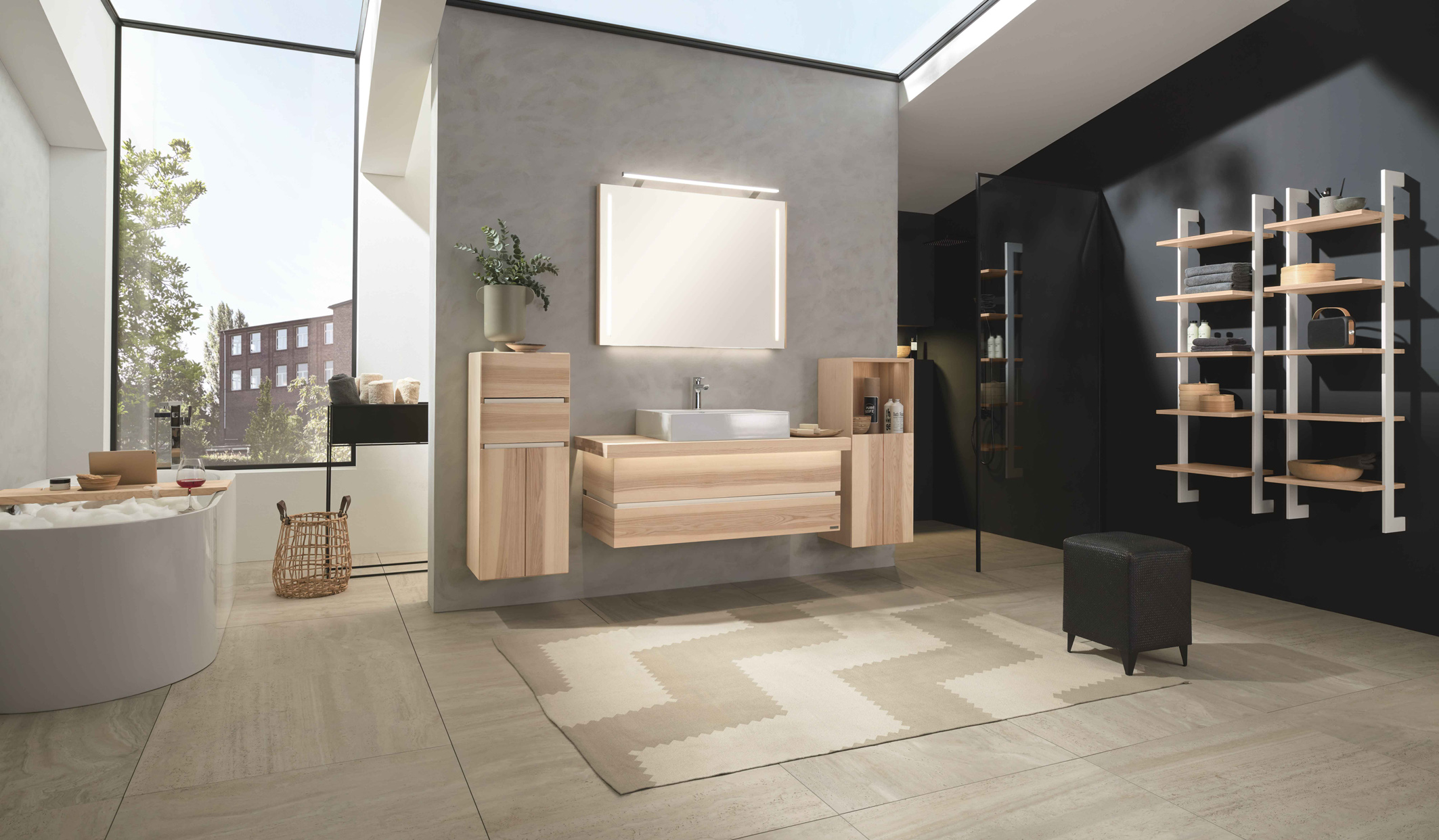 Badezimmermöbel aus Massivholz strahlen Wärme aus und wirken beruhigend. IPM/Thielemeyer