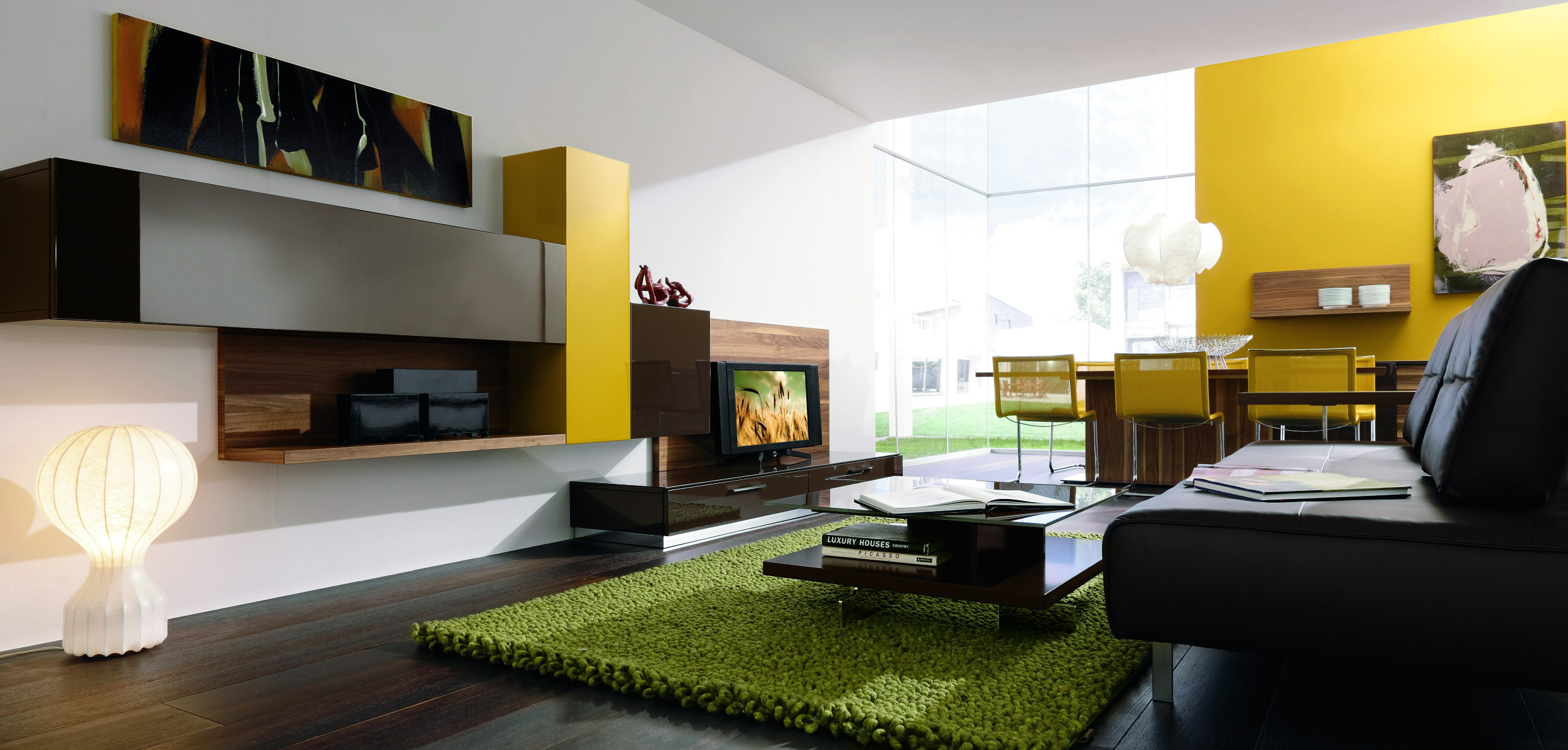 Huelsta-akzent-gelb: Das moderne Wohnzimmer: Farbliche Akzente wirken erfrischend und lebendig. (Foto: huelsta/VDM)