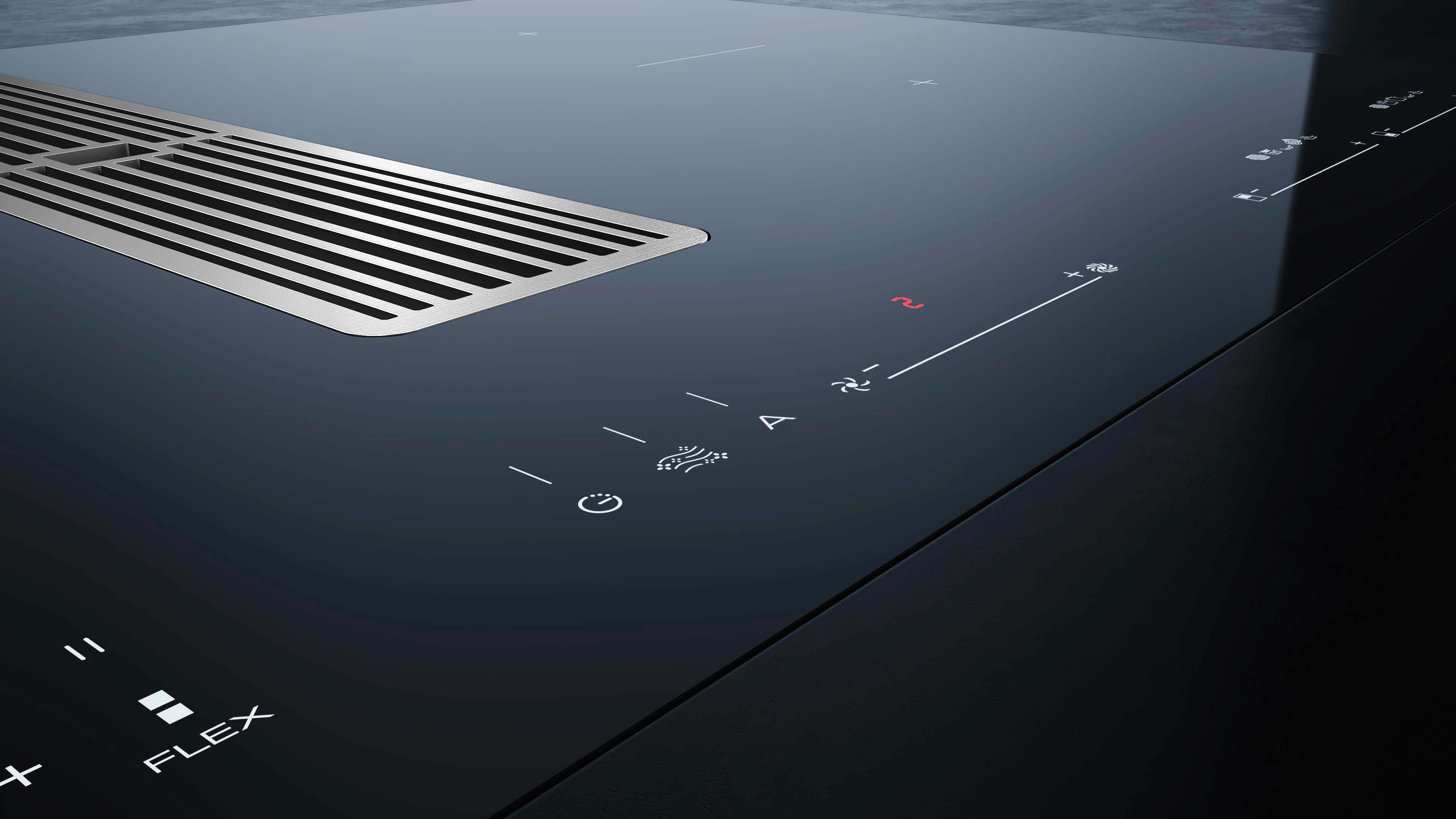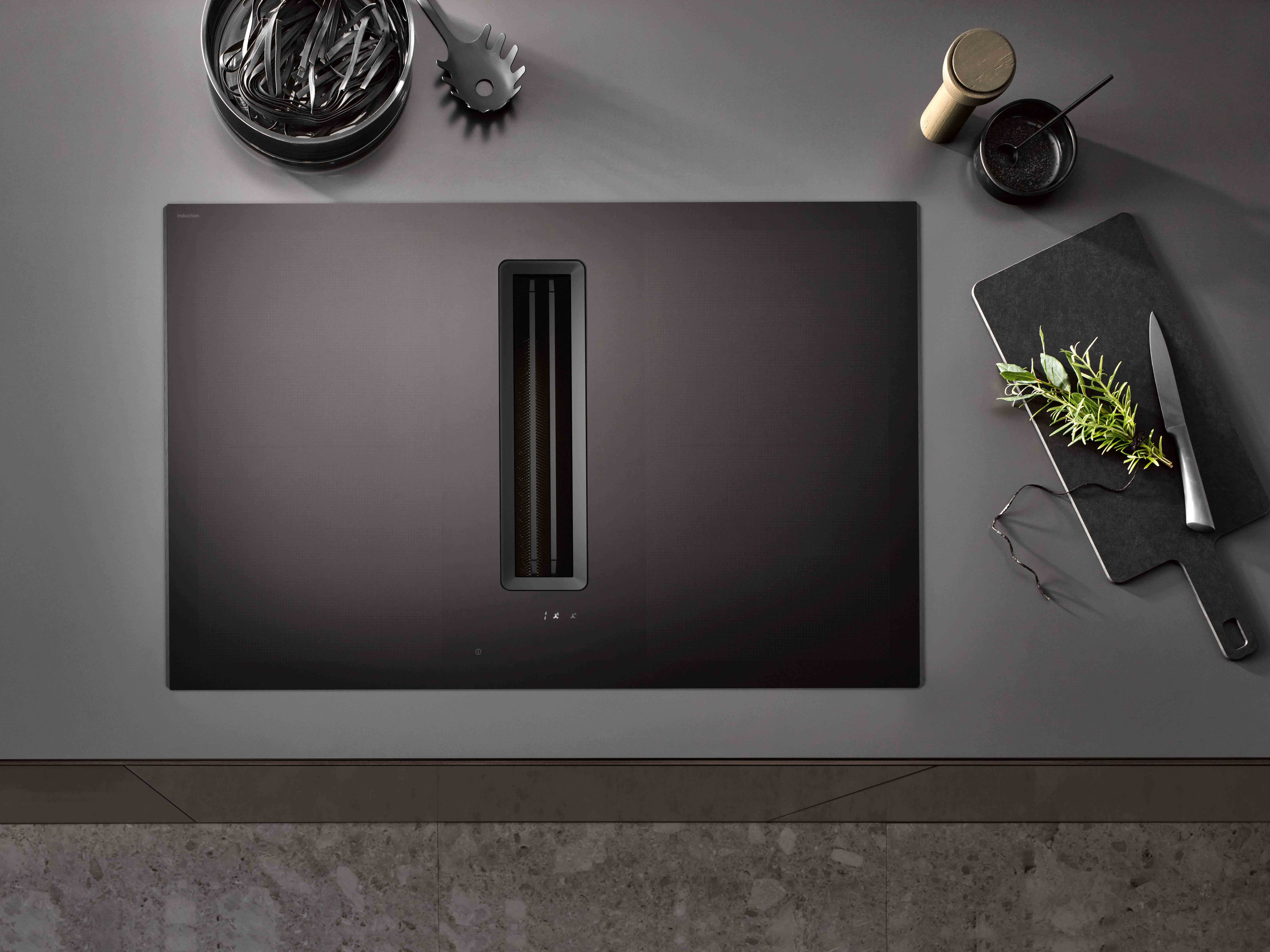 Eine weitere, dezente optische Lösung sind Kochfelder mit einem flächenbündig integrierten Dunstabzug, der Gerüche und Kochschwaden effizient nach unten absaugt. Mit ihrem minimalistischen Design sowie ihrer flachen Bauweise fügen sich diese 2in1-Modelle überall in jede Küchenarchitektur ein. Ob mit einem runden oder rechteckigen Abzugsmodul ausgestattet, die Reinigung ist ganz einfach, denn alle beweglichen und leicht von oben entnehmbaren Teile des Dunstabzugs lassen sich im Geschirrspüler reinigen.   Â