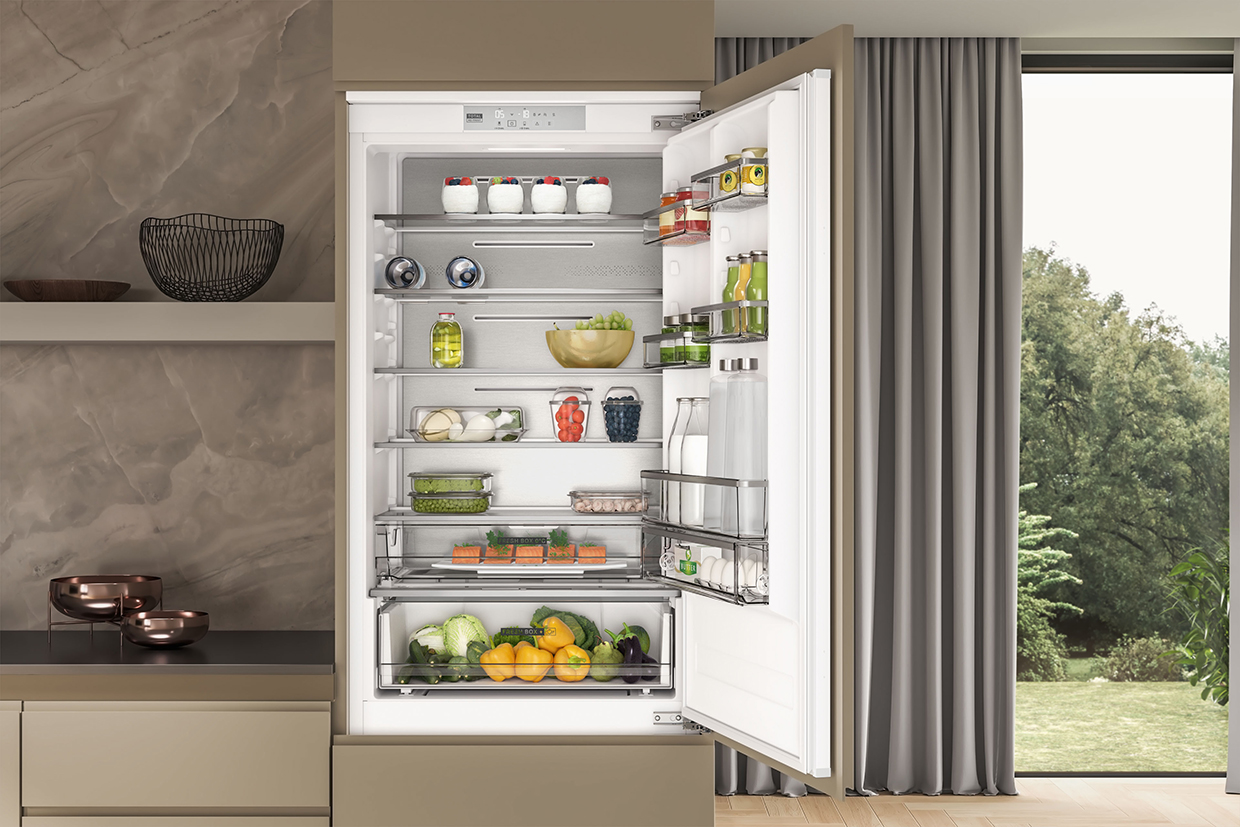 Für den Alltag bedeutet der neue Zugewinn an Höhe und Breite auch mehr Platz für Frisches & Gesundes – zum Beispiel 30 Prozent mehr Lagerkapazität (modellabhängig) in den Frische-Schubladen um die 0 Grad Celsius und somit größere Bevorratungsmöglichkeiten von Obst, Gemüse und Salat. Dank einer Temperatur nahe 0 Grad Celsius und einer regulierbaren Luftfeuchtigkeit bleiben sie außerdem nicht nur länger knackig und taufrisch, sondern bewahren auch länger ihre Vitamine und Nährstoffe. Fisch- und Fleisch kommen in ein eigenes Frischefach bei einer Temperatur nahe 0 Grad Celsius und niedriger Luftfeuchtigkeit und halten sich dadurch ebenfalls beträchtlich länger frisch. Diese und weitere innovative Technologien tragen dazu bei, dass weniger Lebensmittel weggeworfen werden.